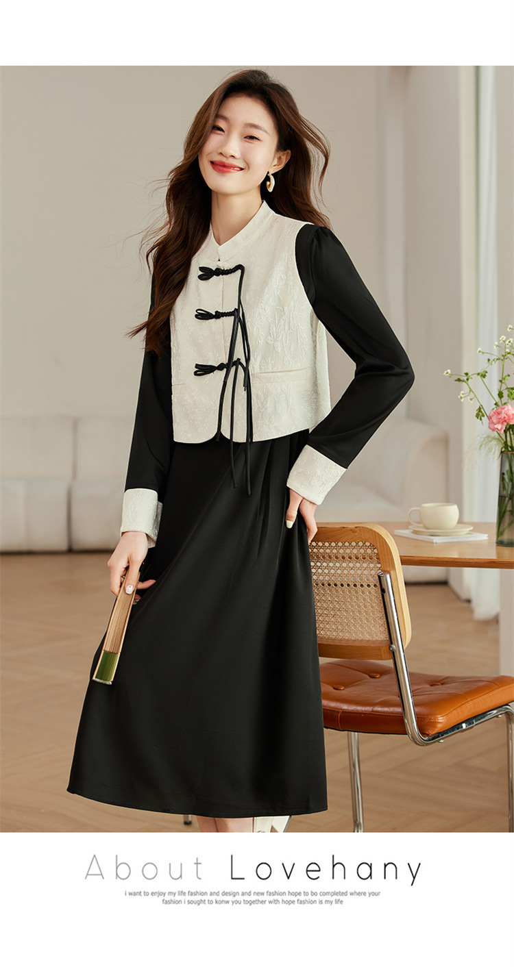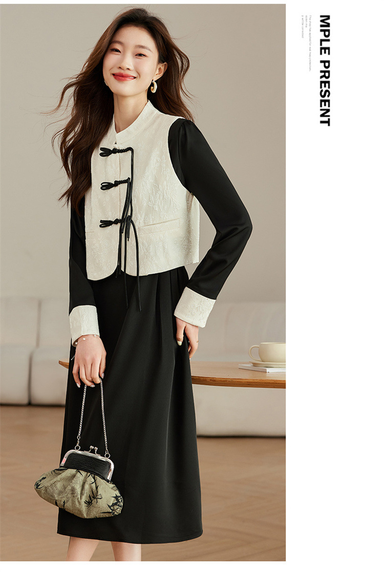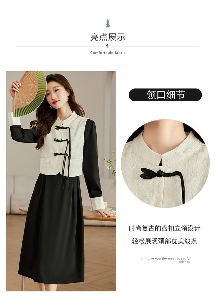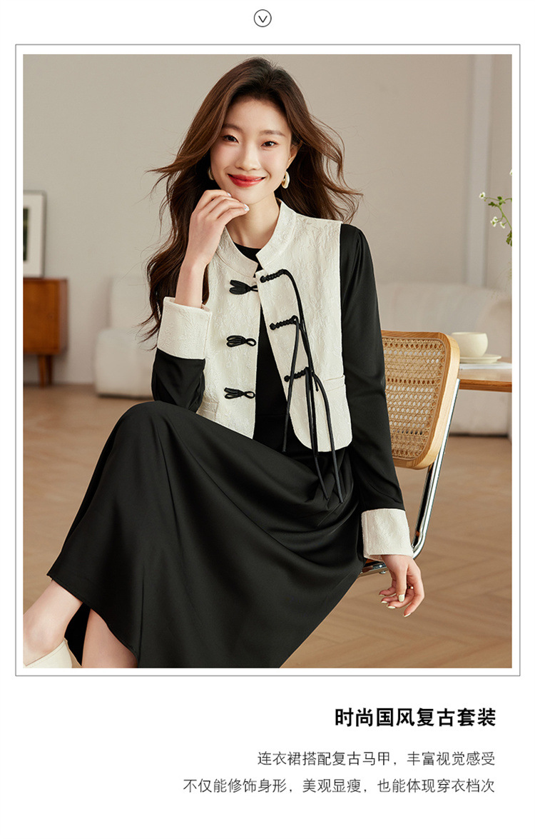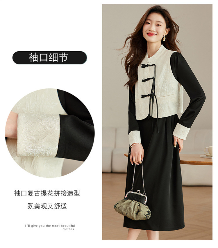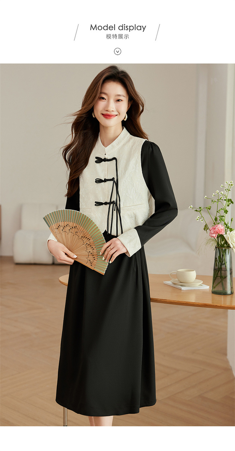 2024年春季上新气质时尚新中式提花马甲修身显瘦打底套装连衣裙HR-ARE3583 商品图4