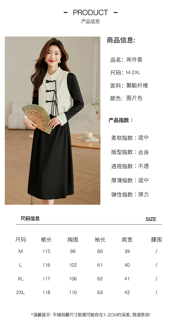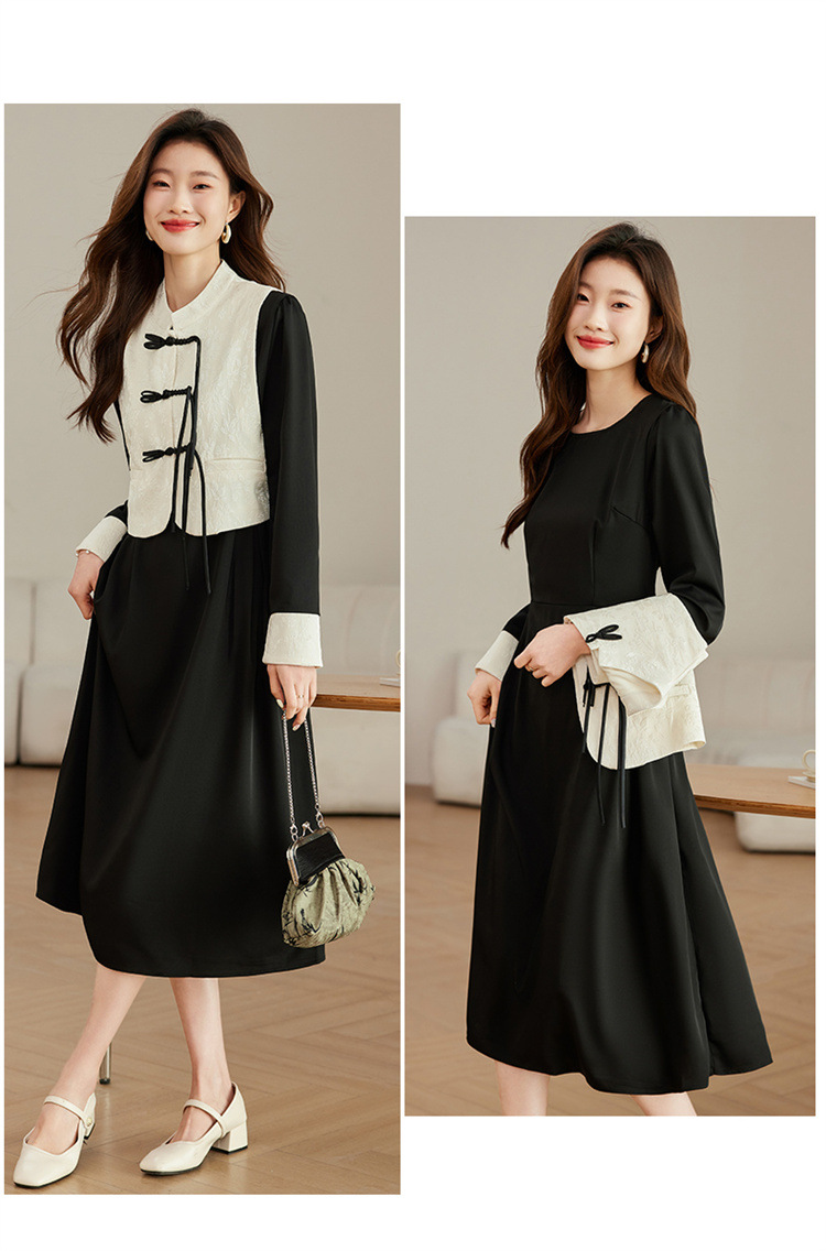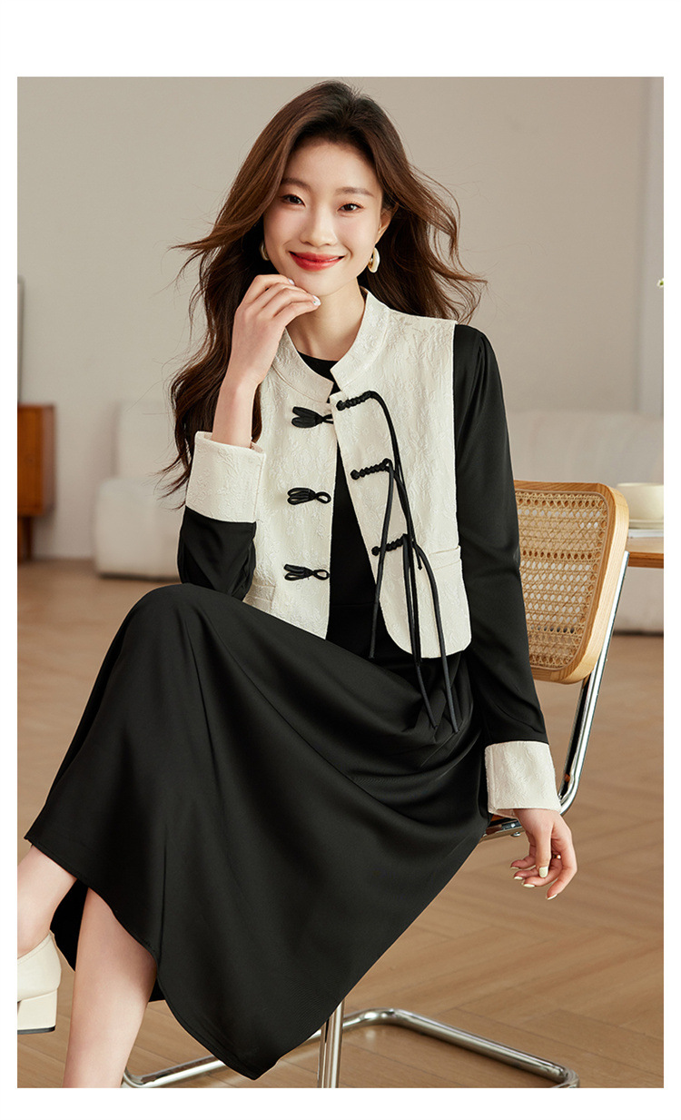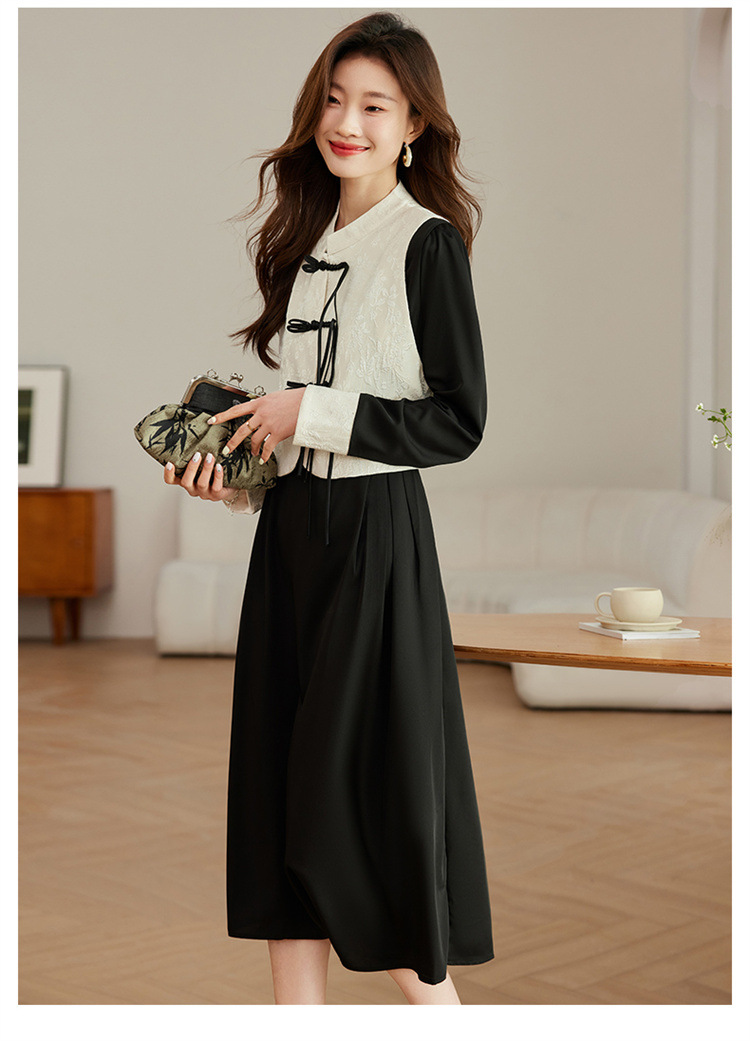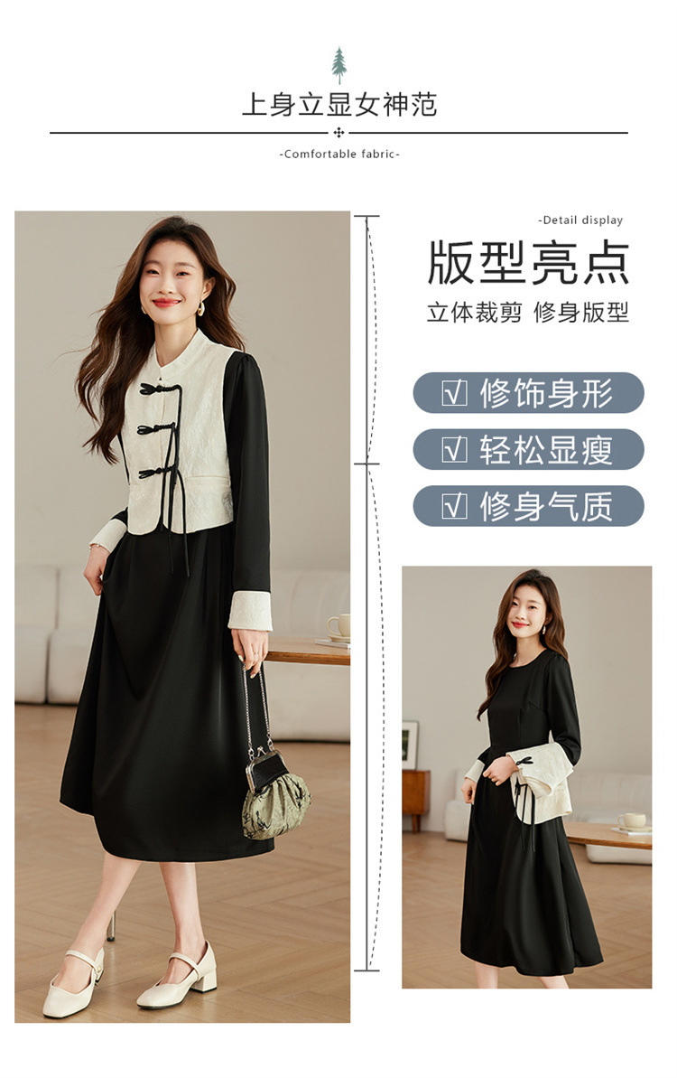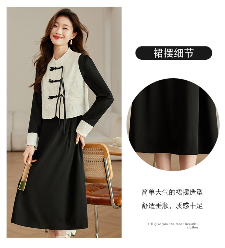2024年春季上新气质时尚新中式提花马甲修身显瘦打底套装连衣裙HR-ARE3583 商品图4