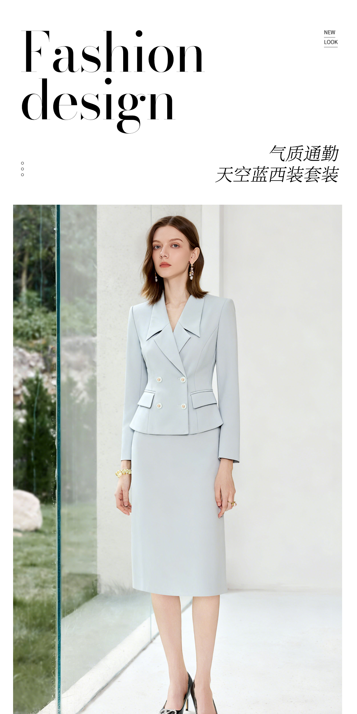 IWY/蓝色小香风西装套裙女高级感气质职业装通勤风显瘦西服正装WCS102