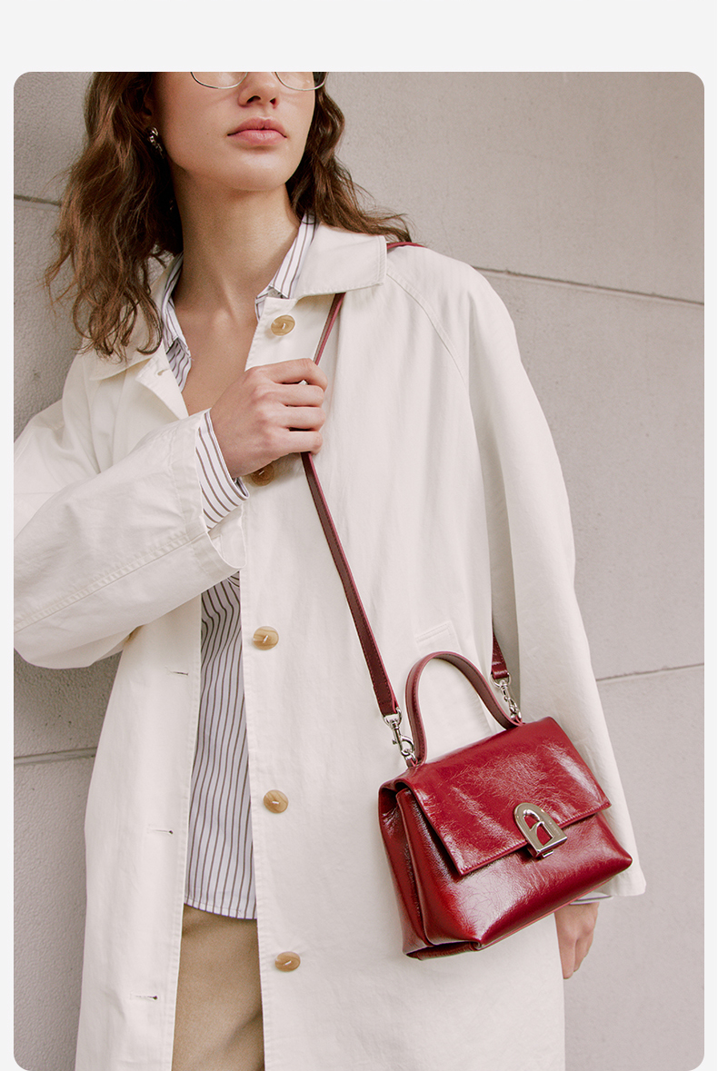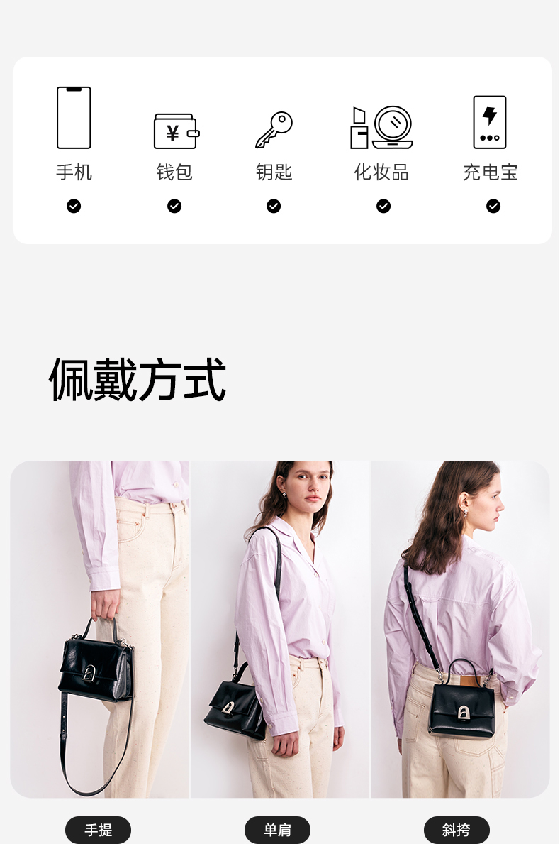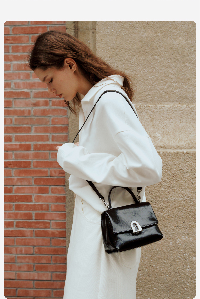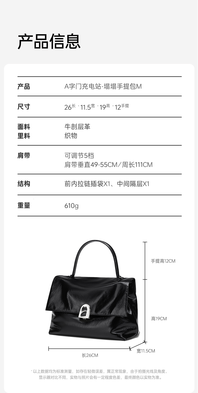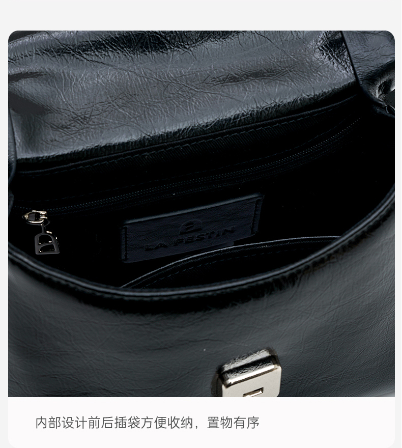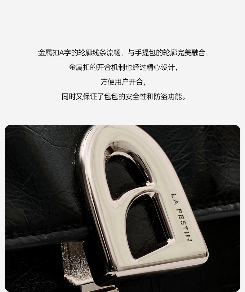 【品牌优选】拉菲斯汀小号塌塌手提包包女士2024新款黑色单肩斜挎包真皮凯莉包