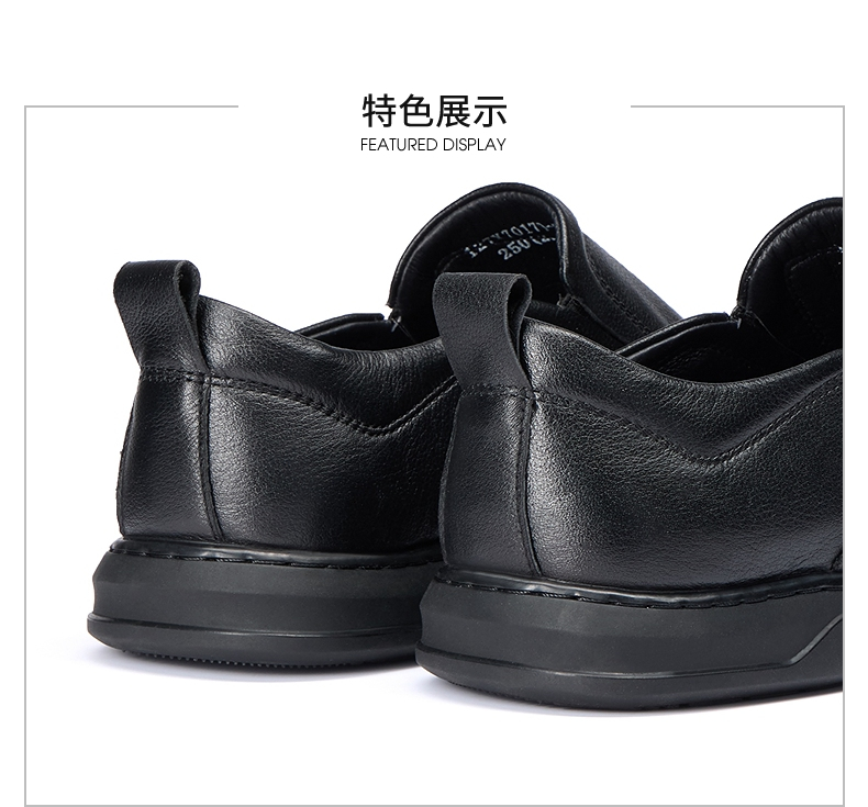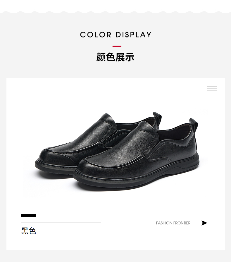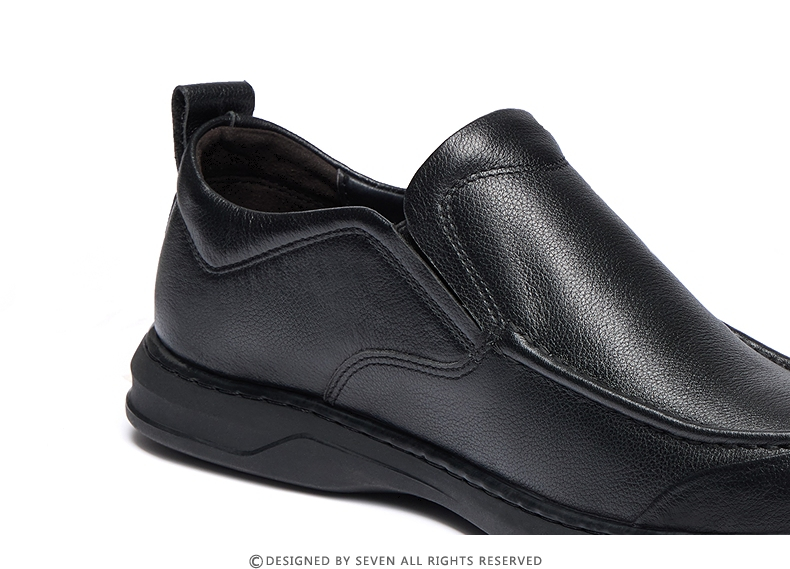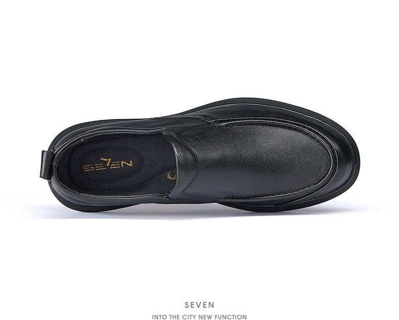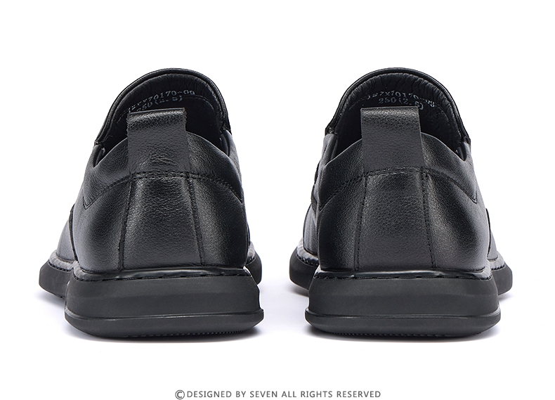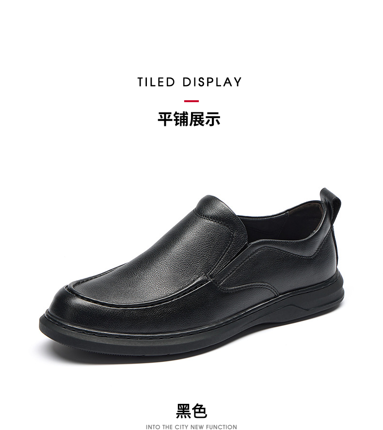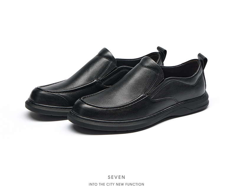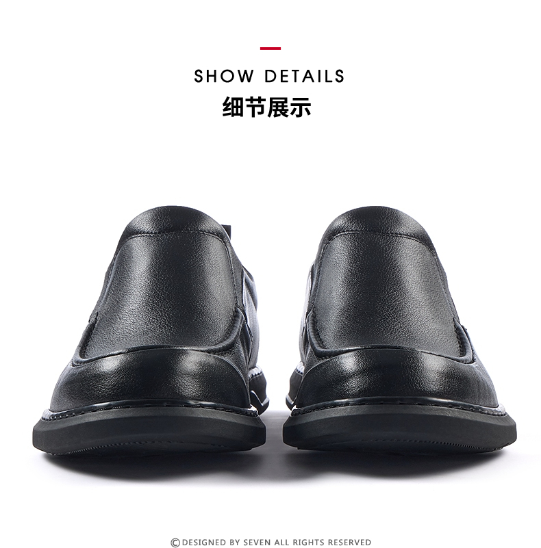 柒牌男士商务休闲皮鞋2025秋季新款真皮透气一脚蹬黑色软面懒人鞋 127X70170