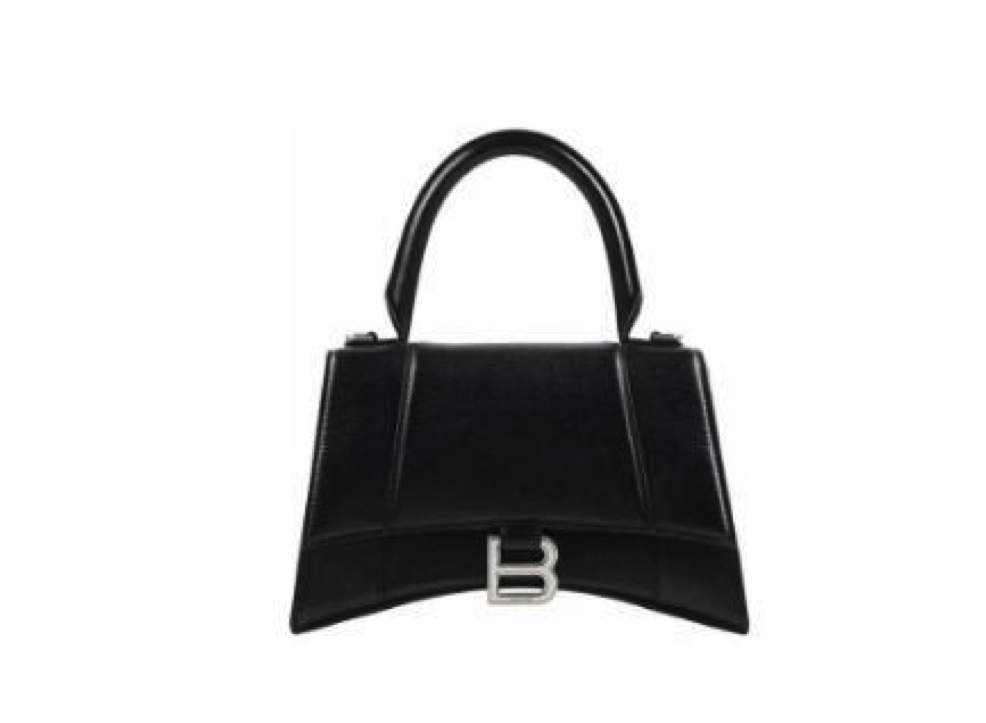 Balenciaga巴黎世家 hourglass 银扣纯色 荔枝纹牛皮 沙漏包单肩斜挎手提包 小号女款 黑色