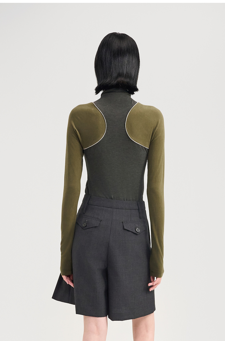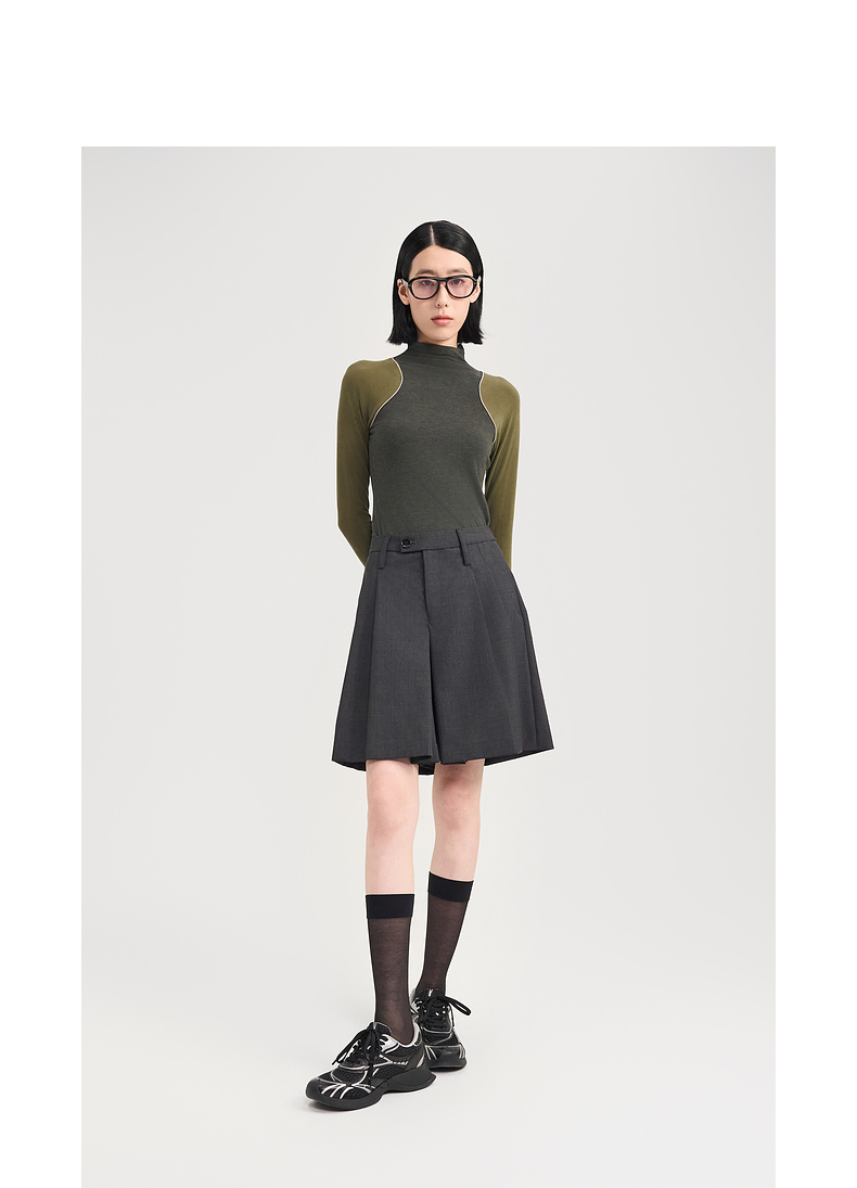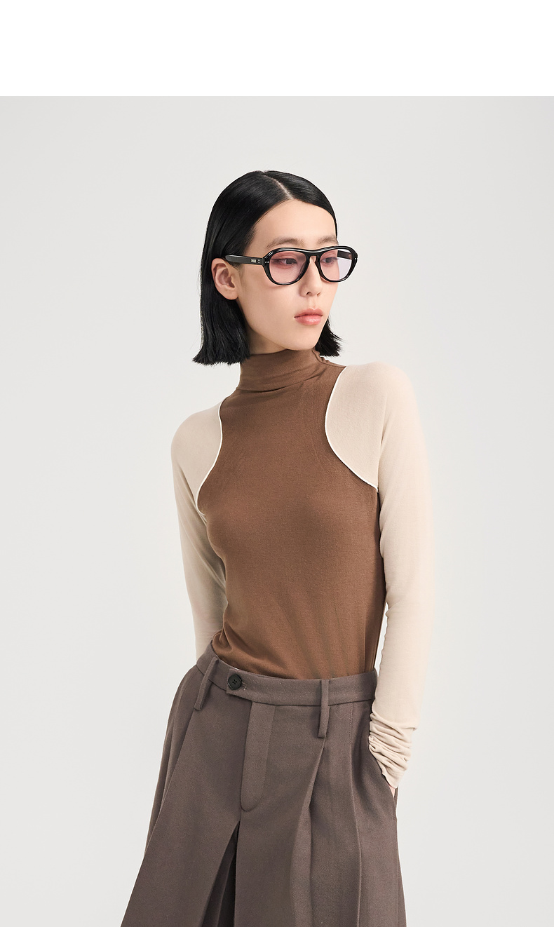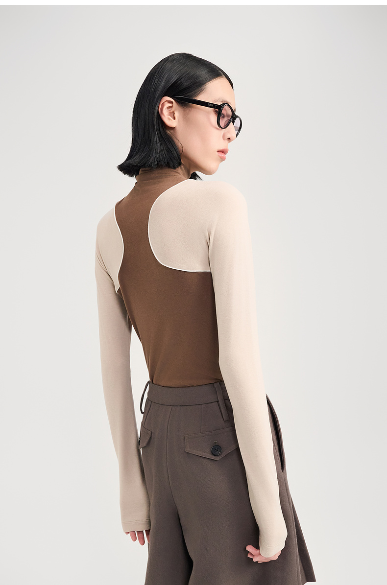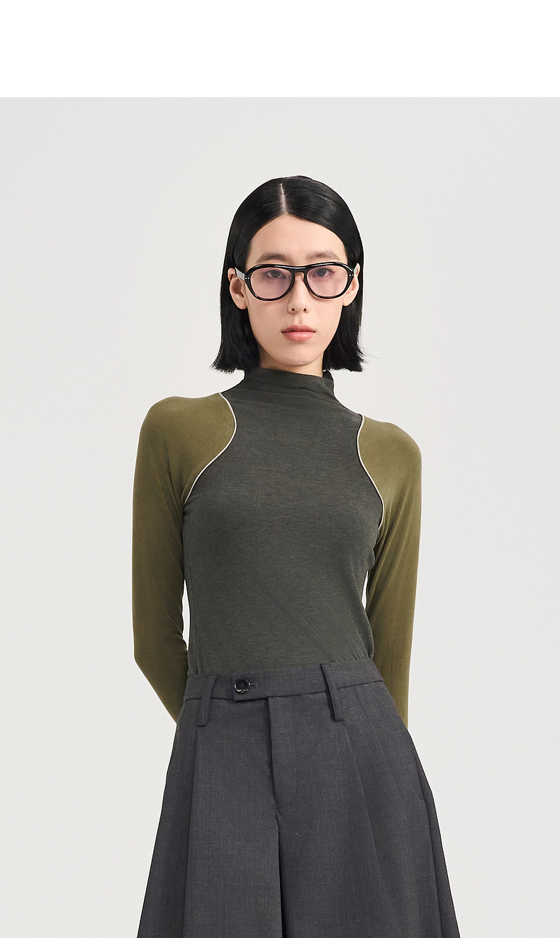 lost in echo2024秋季新款时尚撞色工字插肩袖长袖针织打底衫女