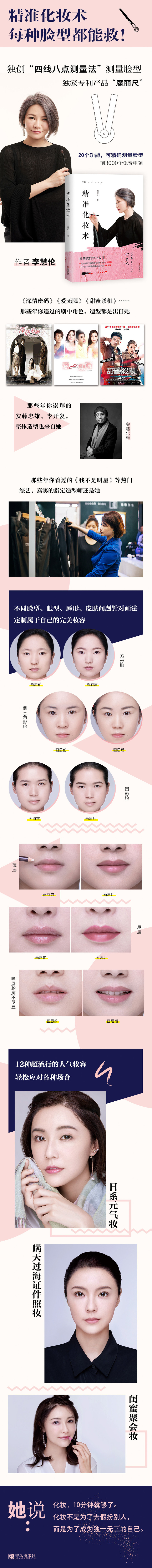 2.本书提出的“精准化妆”方法弥补了市面上化妆术千篇一律、缺乏针对性、可借鉴性不强的缺点,能给予每一位读者私人订制般的感受。