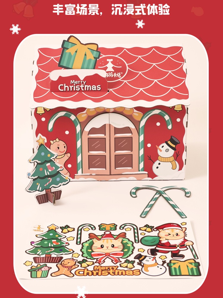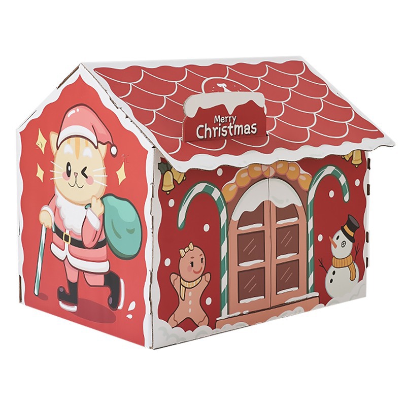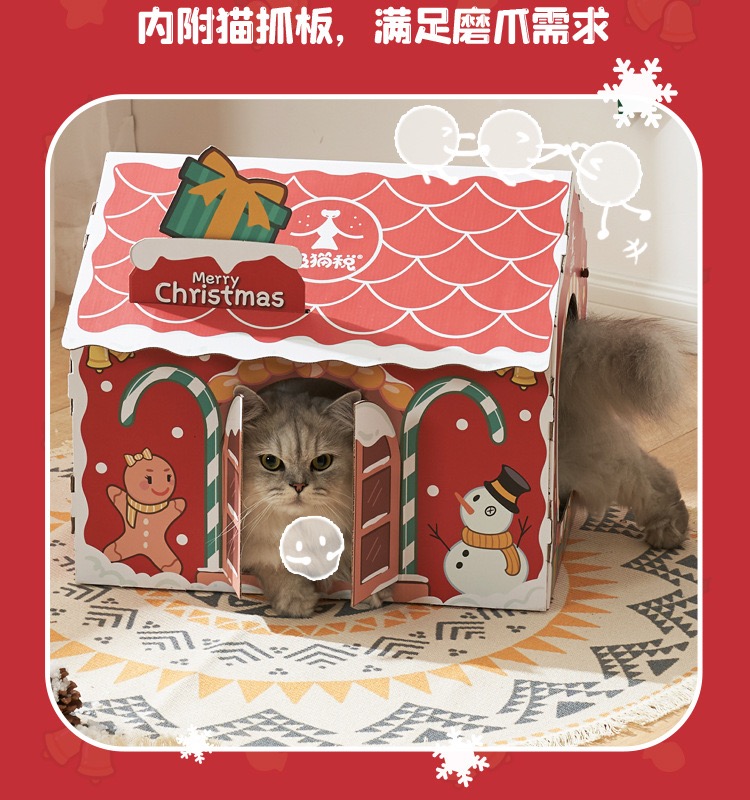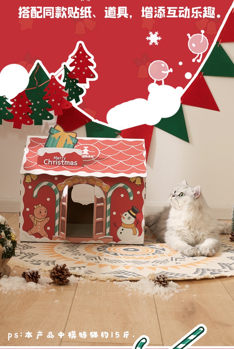 可爱圣诞小屋 猫抓板猫屋自带圣诞贴纸 团购福利【15斤以内猫咪都装得下】