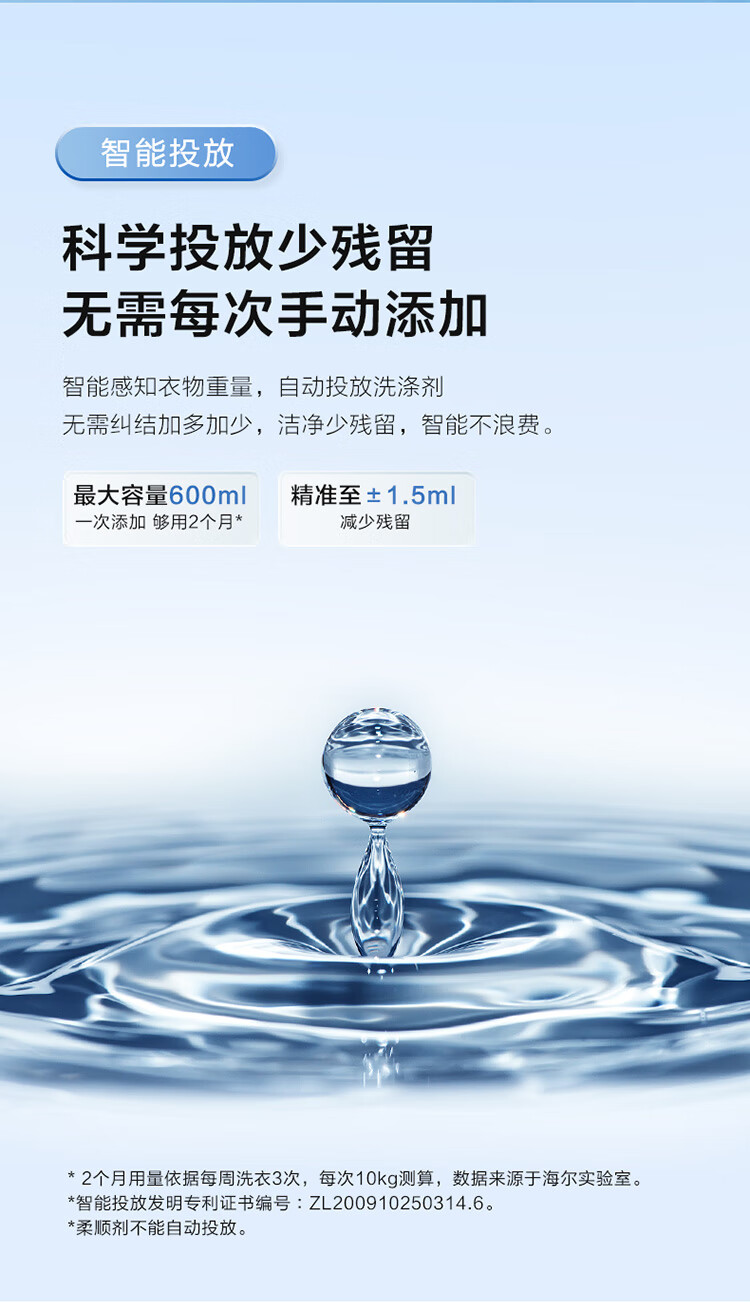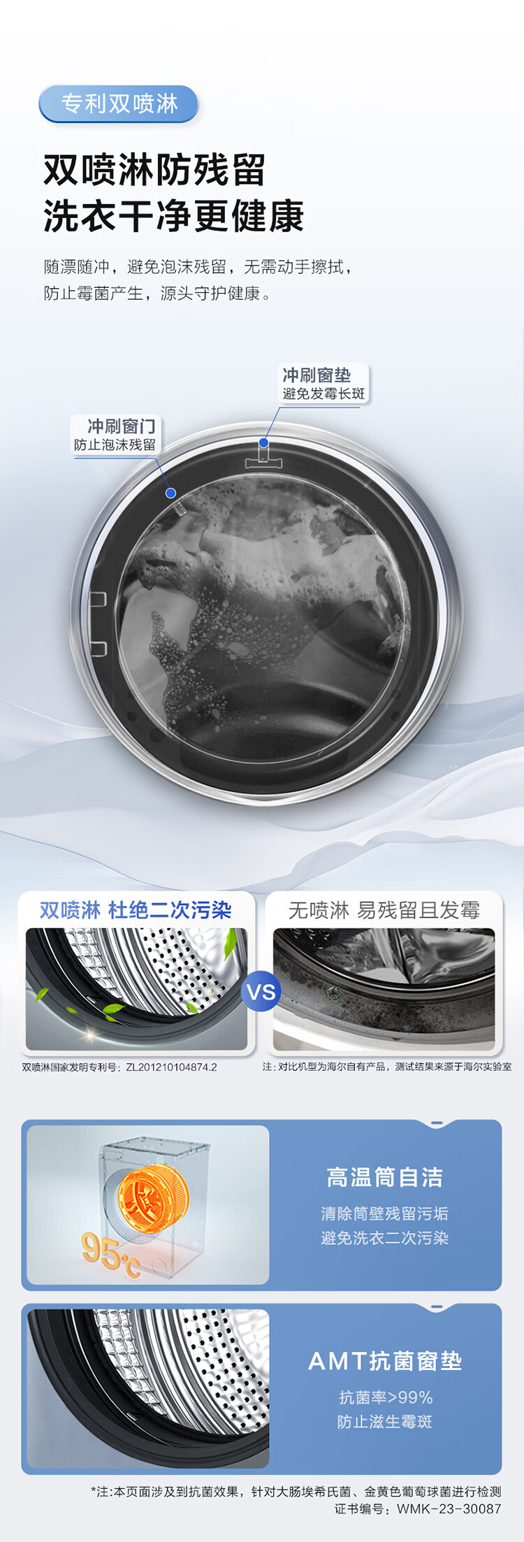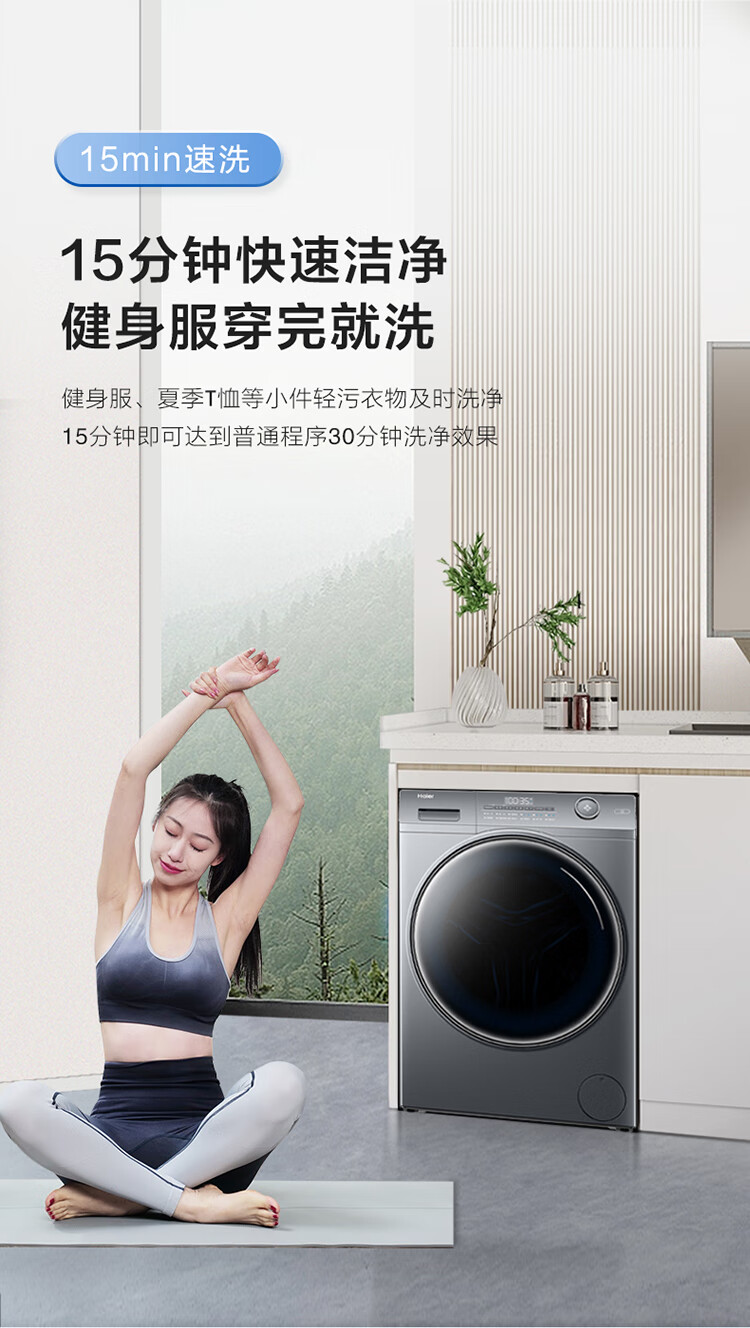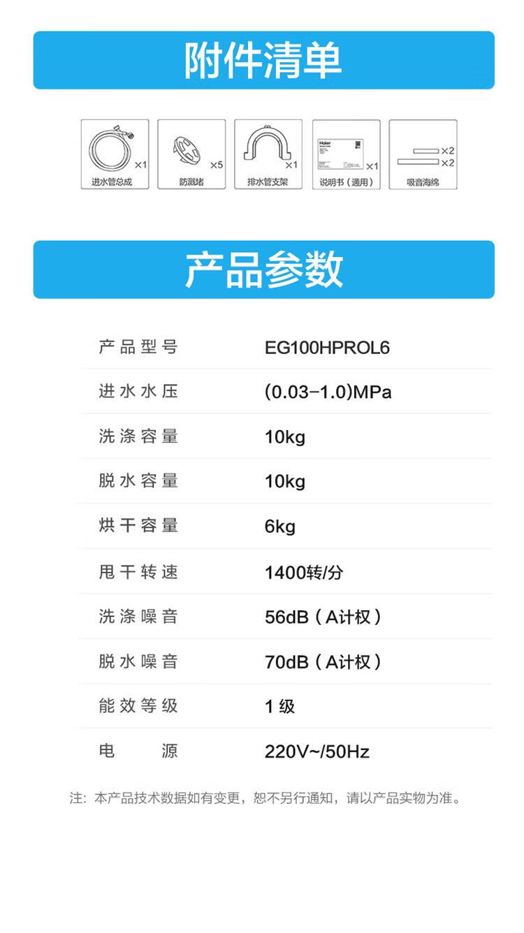 海尔(Haier)525超薄系列滚筒洗烘一体10公斤 空气洗 除菌螨 智能投放 洗净比1.1 EG100HPROL6