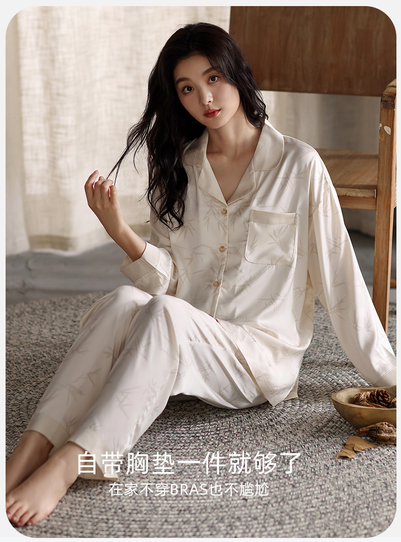 【大牌品质】【带胸垫冰丝睡衣】春夏高级轻奢丝滑凉爽女士家居服套装