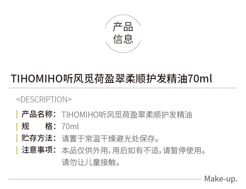 TIHOMIHO听风觅荷盈翠柔顺护发精油70ml(220236)