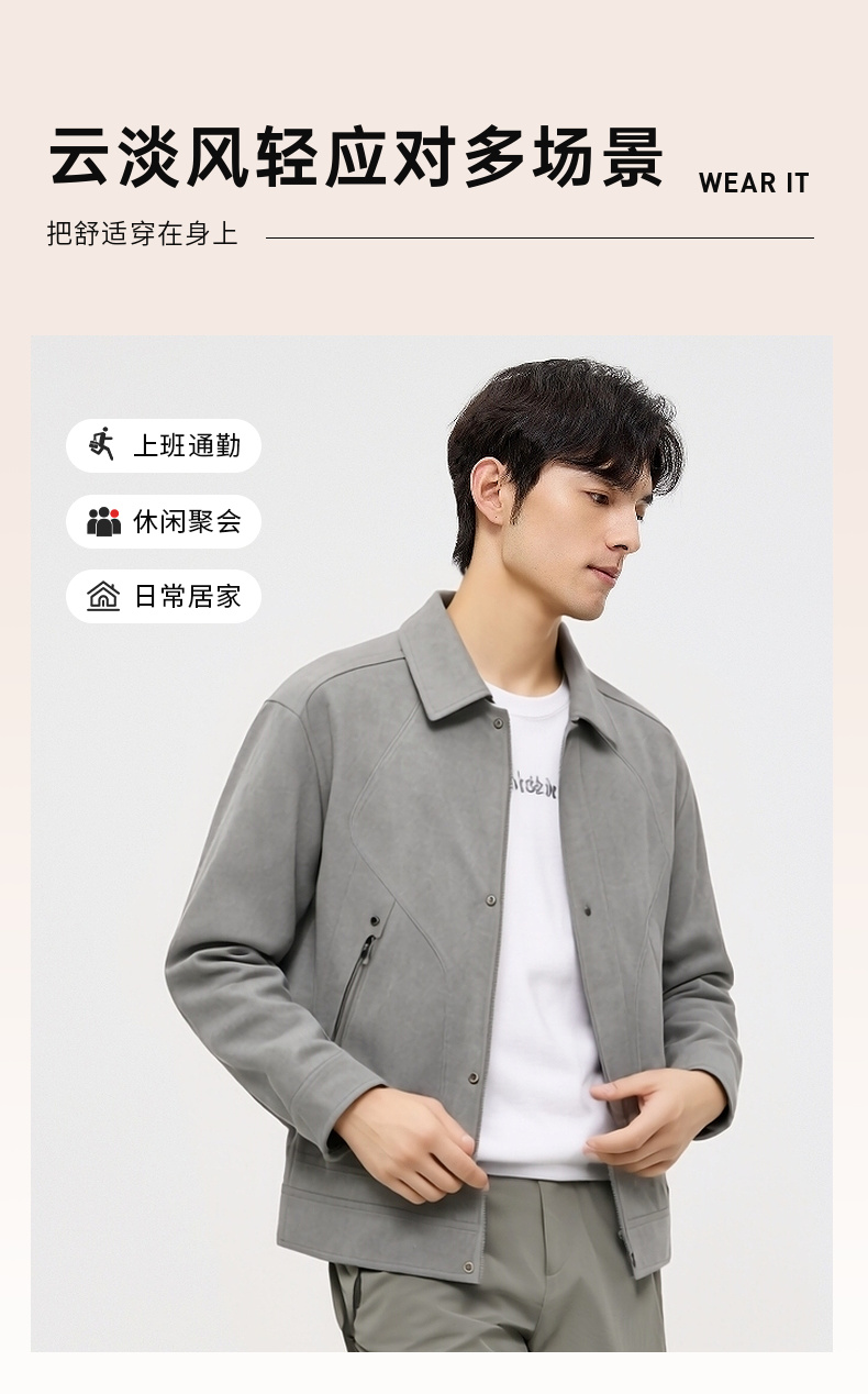 圣得西翻领夹克男装2025年春季新款休闲通勤商务短款夹克外套男2512932076