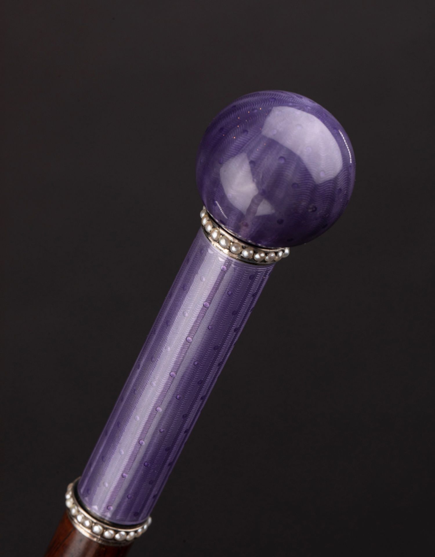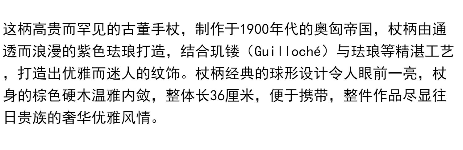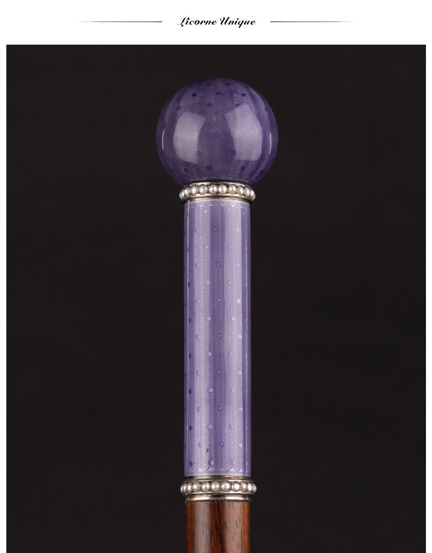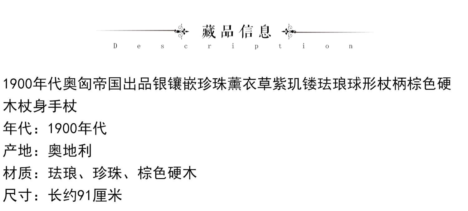 独角鹿西洋古董奥匈帝国银镶嵌珍珠紫色玑镂珐琅杖柄硬木杖身手杖