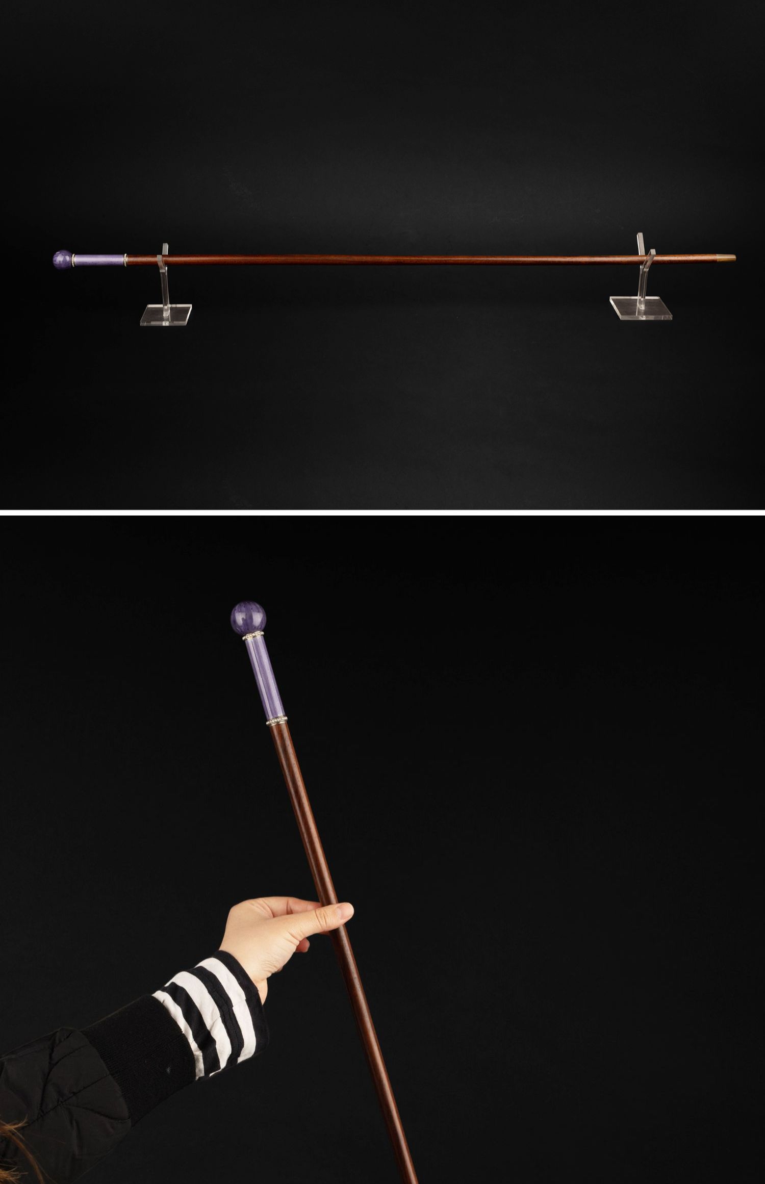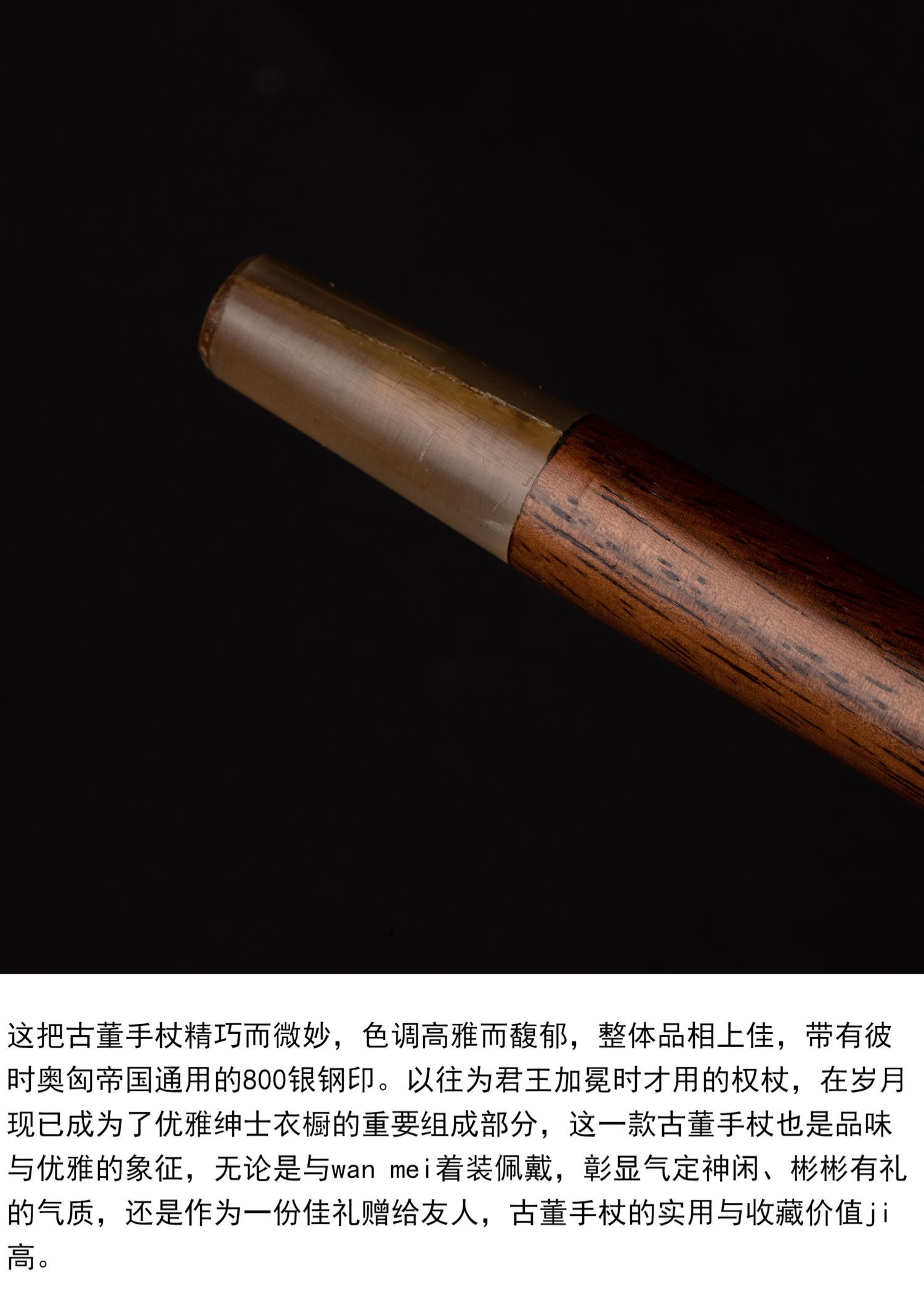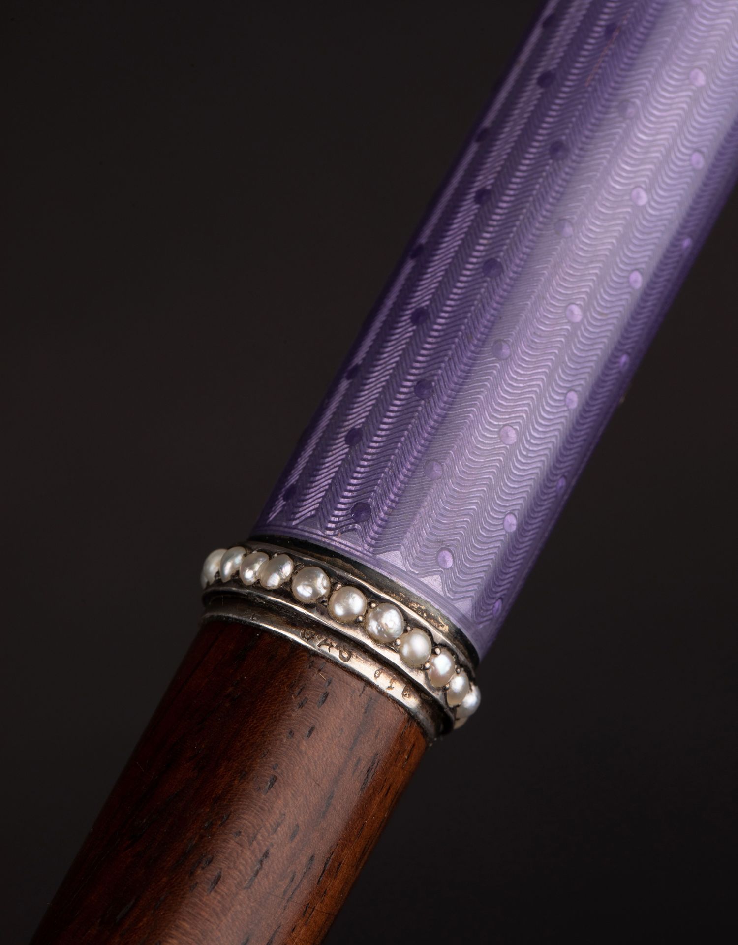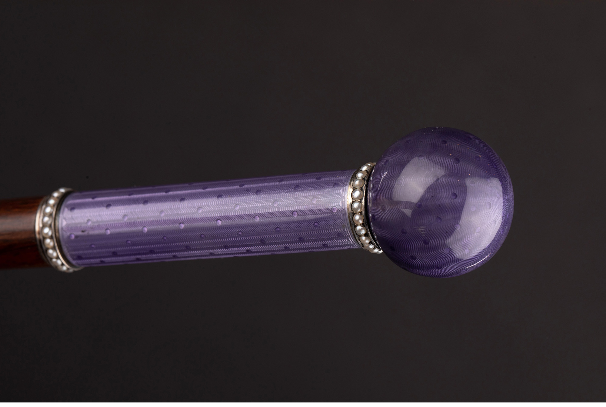 独角鹿西洋古董奥匈帝国银镶嵌珍珠紫色玑镂珐琅杖柄硬木杖身手杖