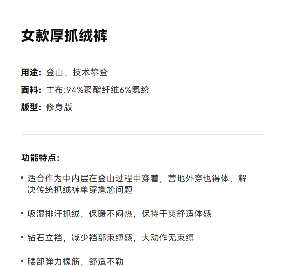 KAILAS凯乐石 女款厚抓绒裤 KG2542401