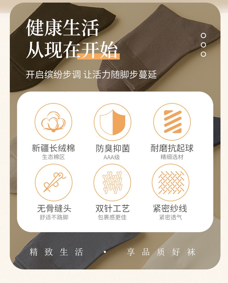 【YW】无忧购(25/3件)男士休闲无骨一体机新疆棉抗起球透气吸汗中筒袜9103(截单后7天发货)25年清仓捡漏
