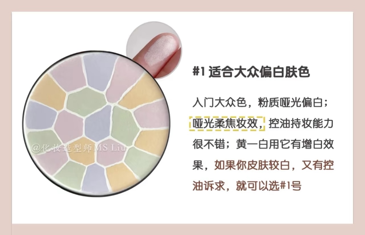 1#雾面一白,控油佳人气最高,自然清透哑光妆效