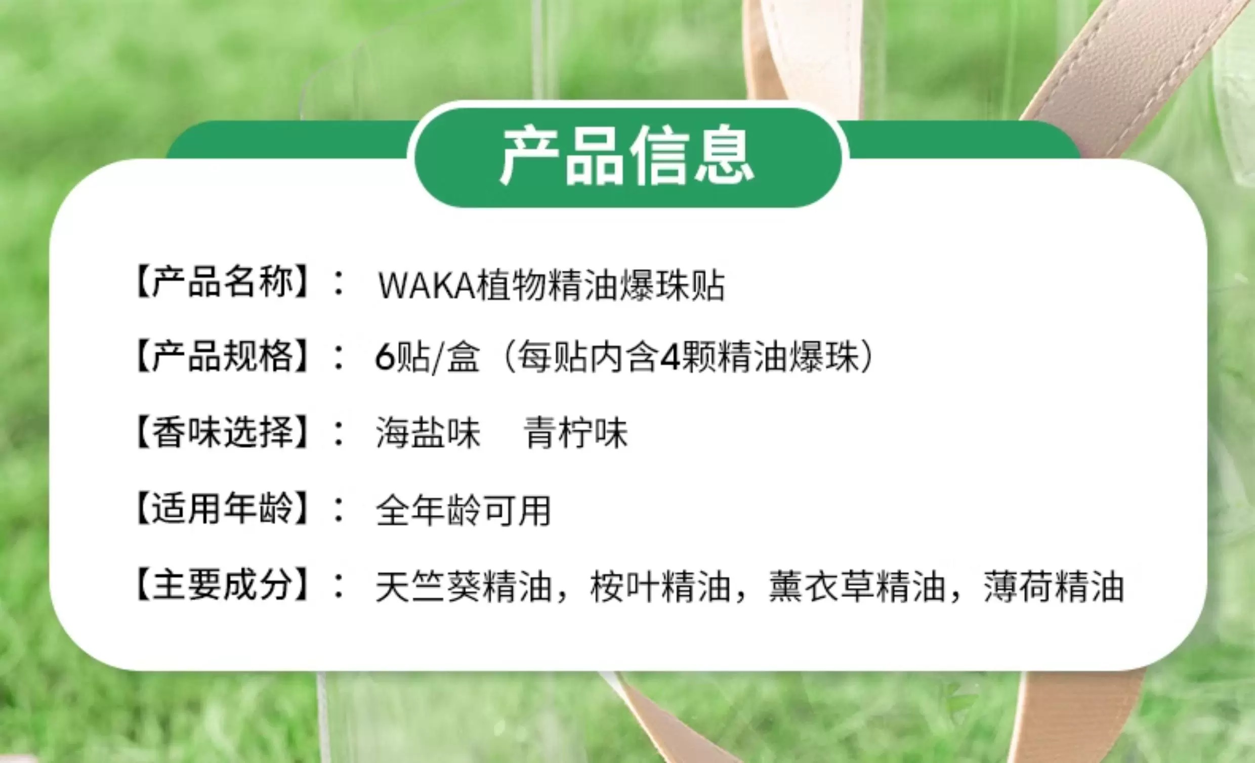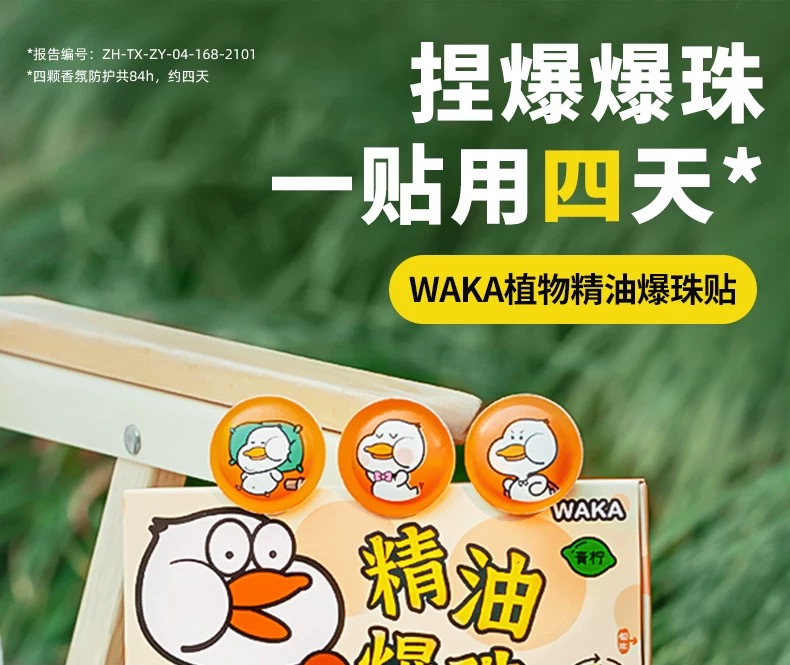 WAKA精油爆珠防护贴儿童植物防护嗡嗡叮咬青柠海盐户外随身鸭鸭贴