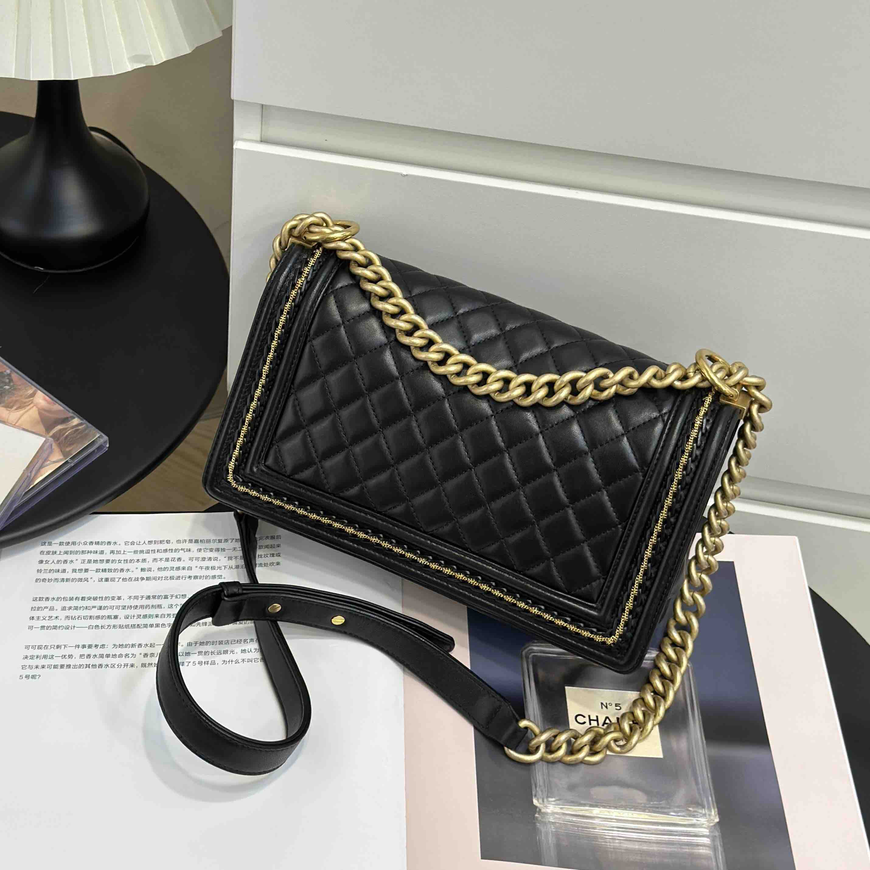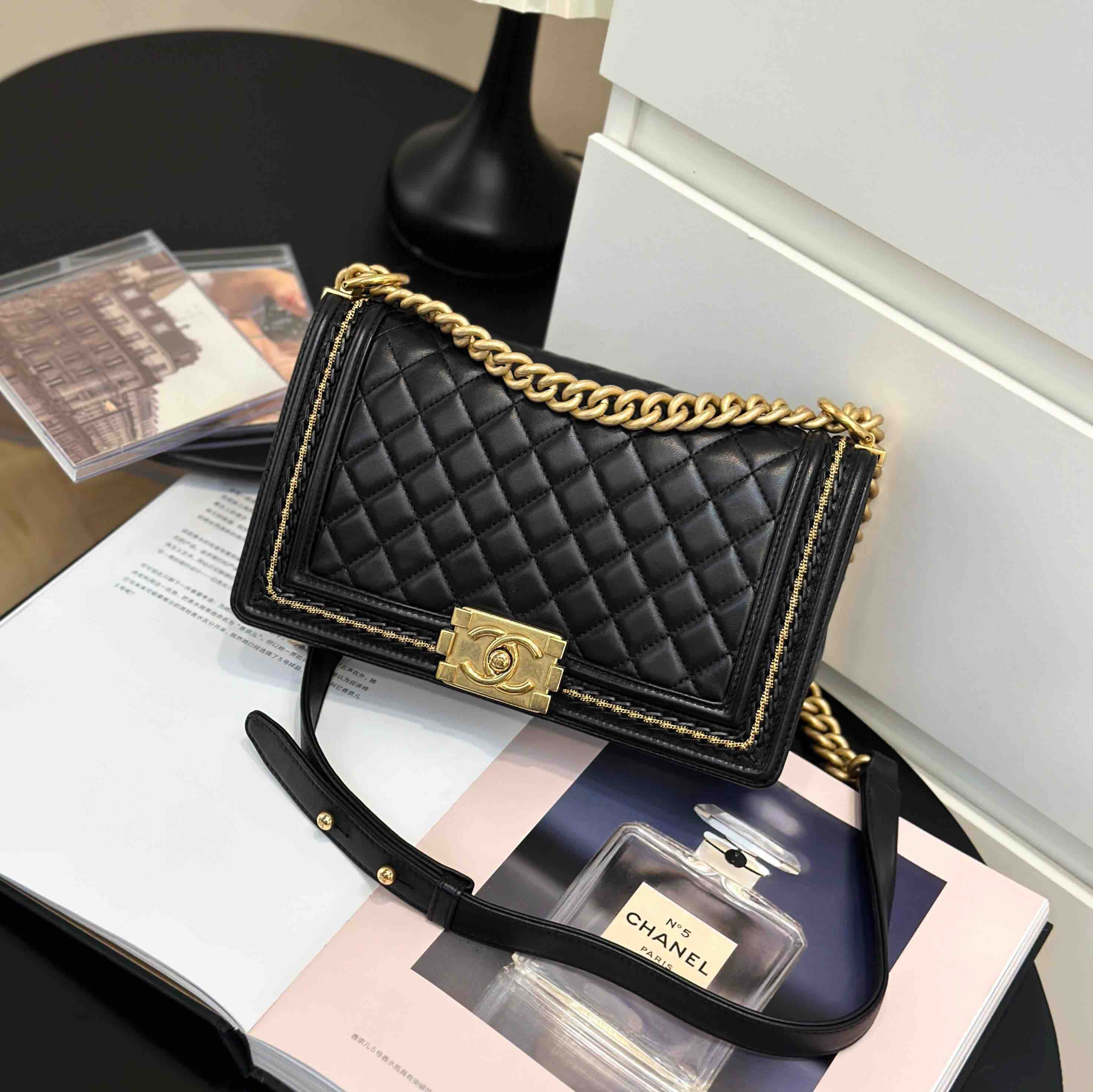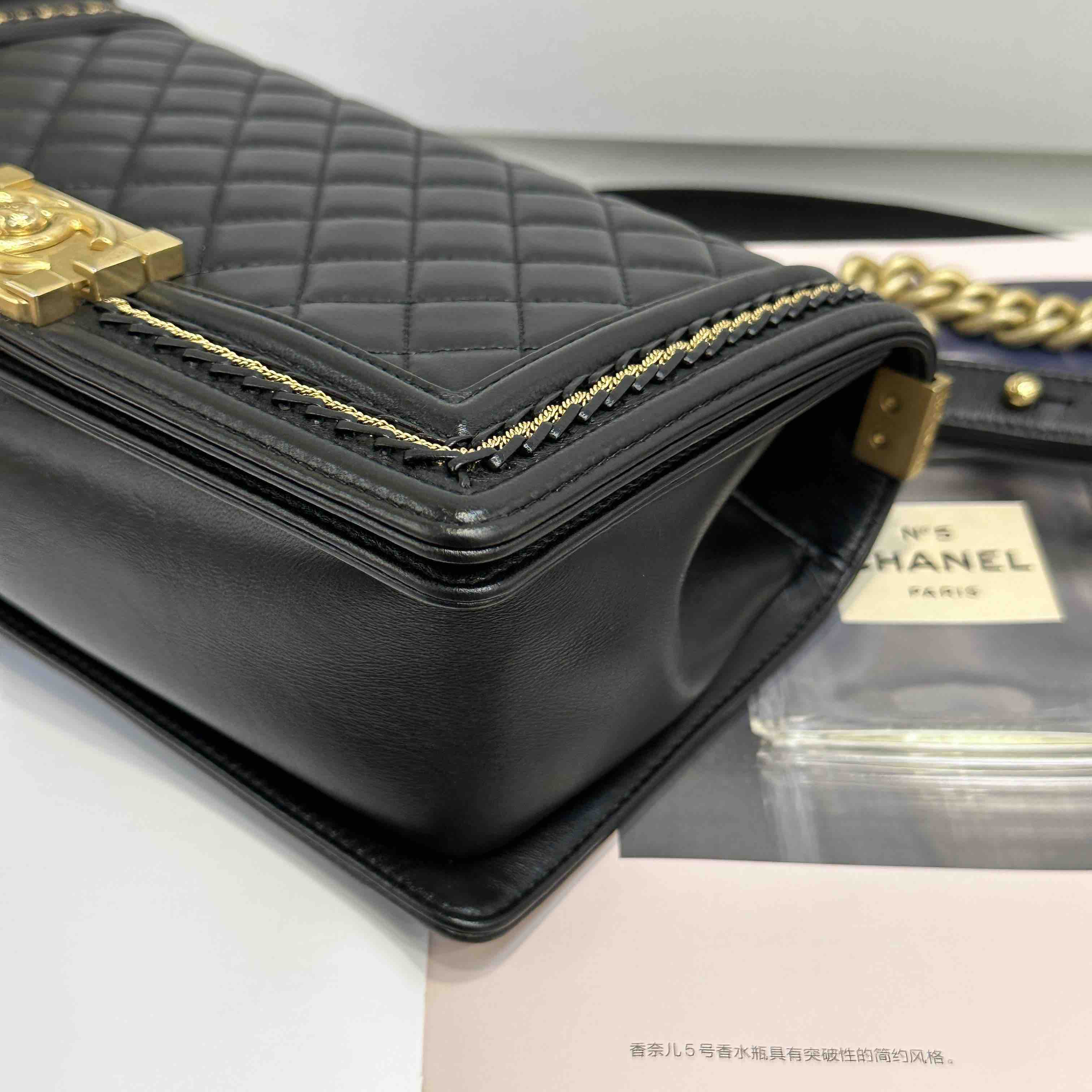 CHANEL LEBOY 羊皮 中号 黑金 编织 斜挎包