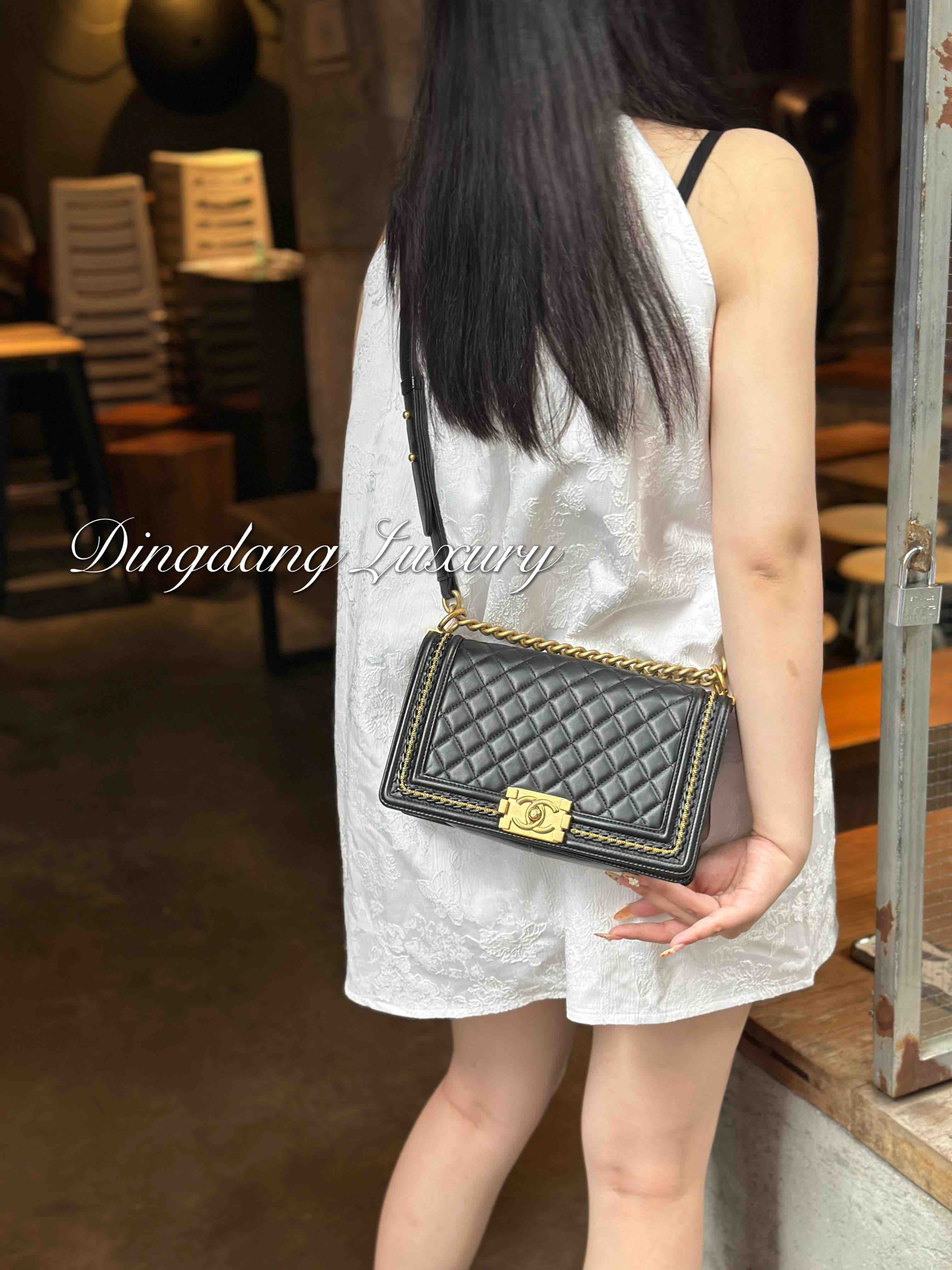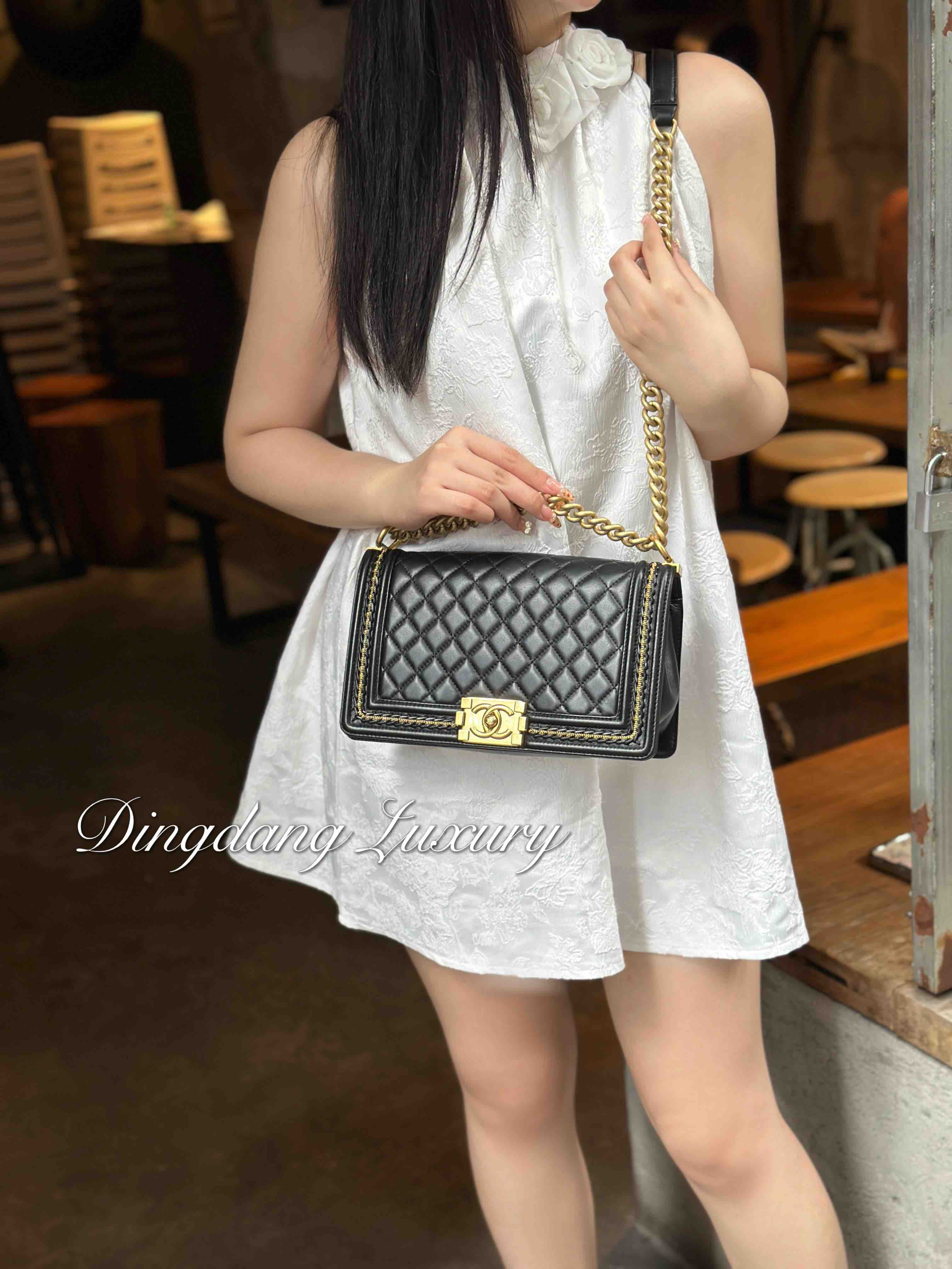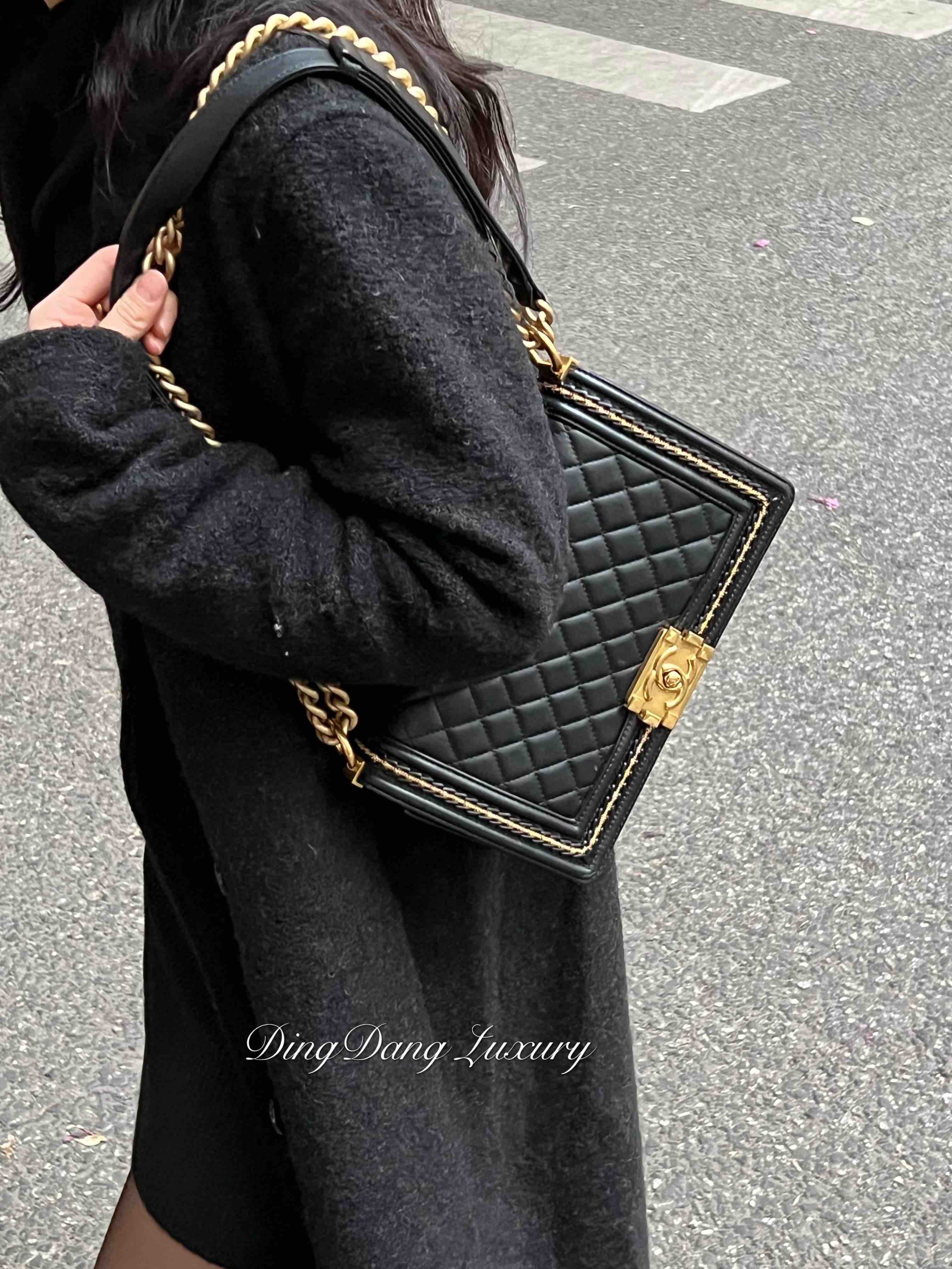 CHANEL LEBOY 羊皮 中号 黑金 编织 斜挎包
