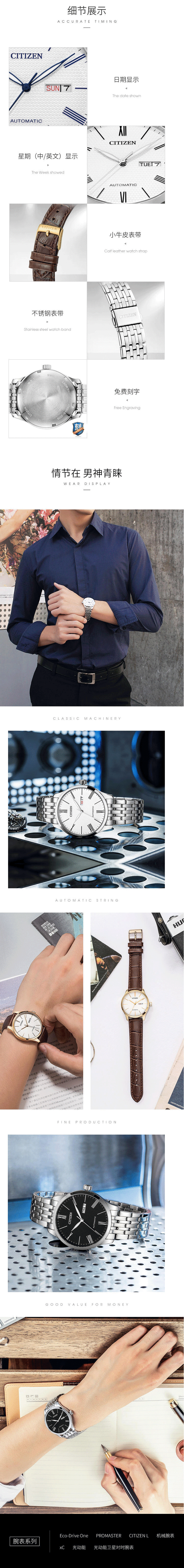 日本西铁城自动机械男装手表商务NH8350-59EB