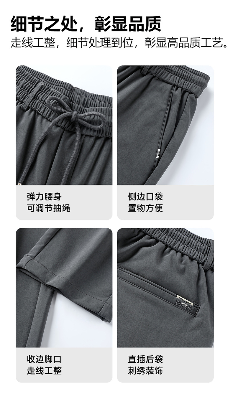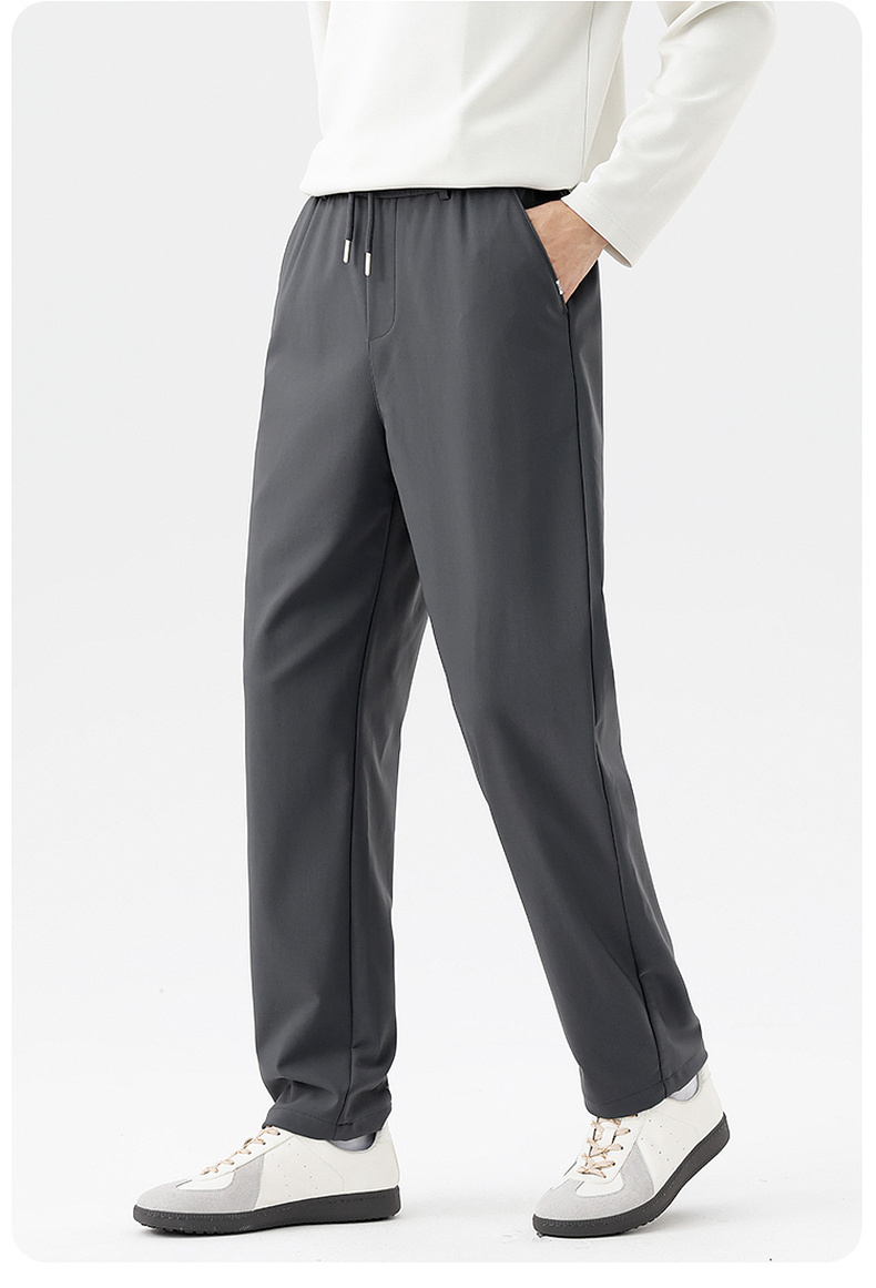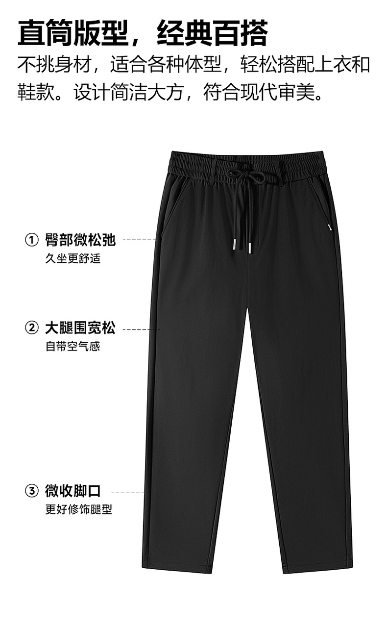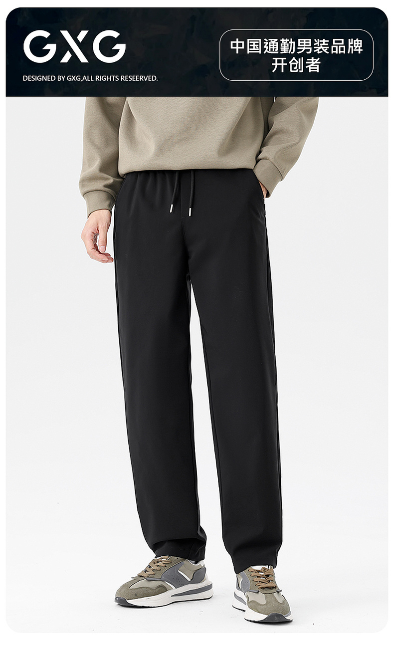 GXG男装25秋季舒适弹力松紧腰抽绳轻薄简约修身版男式直筒休闲裤K&C