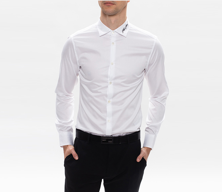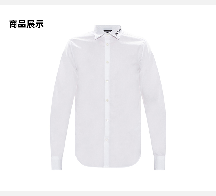 ARMANI 阿玛尼 男士棉质翻领鹰标刺绣长袖衬衫 白色 3K1CC3 1NXRZ 0152