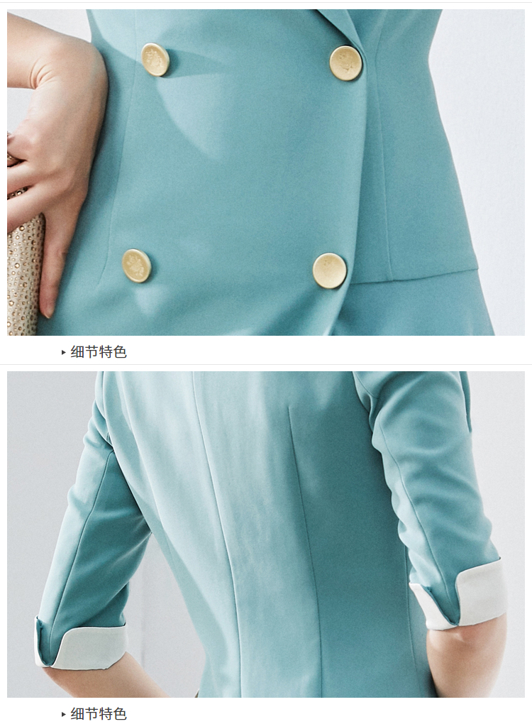 “刚柔并济” J20183885A颈袖添香季时尚OL优雅气质职场装包臀裙修身女士连衣裙七分袖