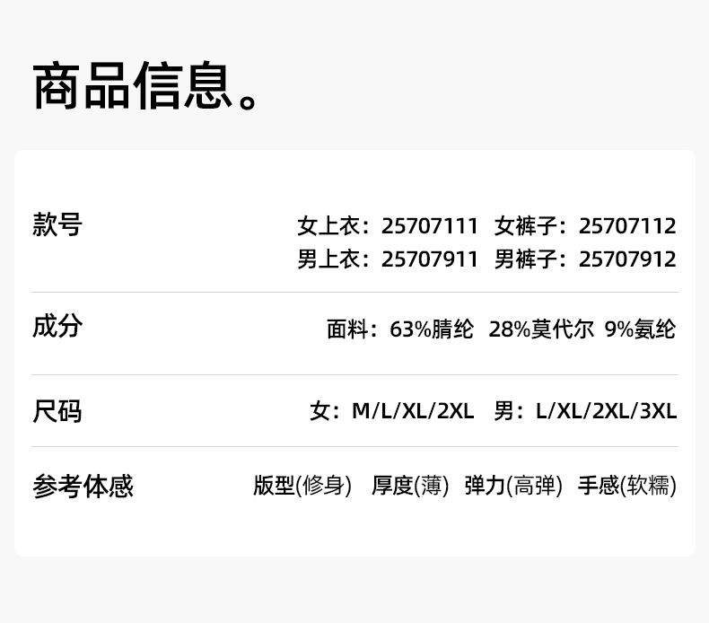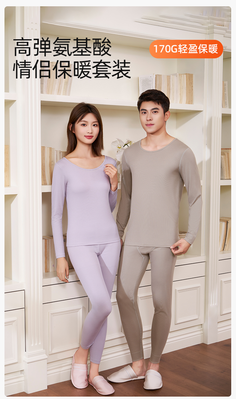 【氨基酸】熳洁儿 升级170G保暖打底吸湿发热圆领套装情侣款25707111/25707911