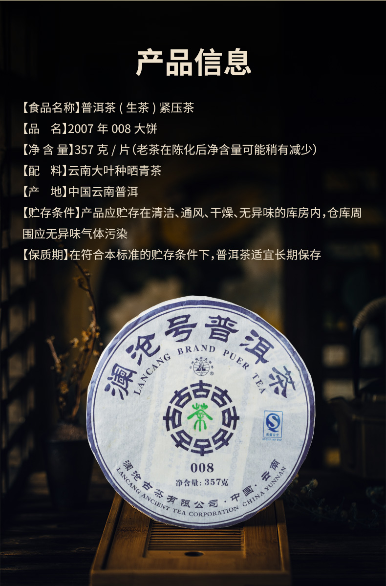 【老茶推荐】澜沧古茶2007年008大饼普洱茶生茶生普云南七子饼茶叶357g