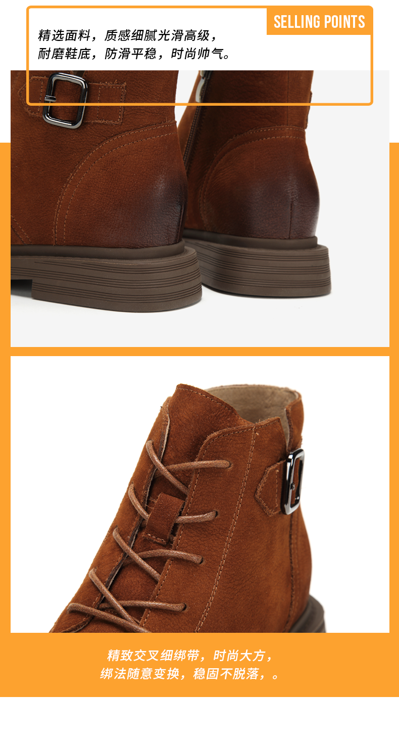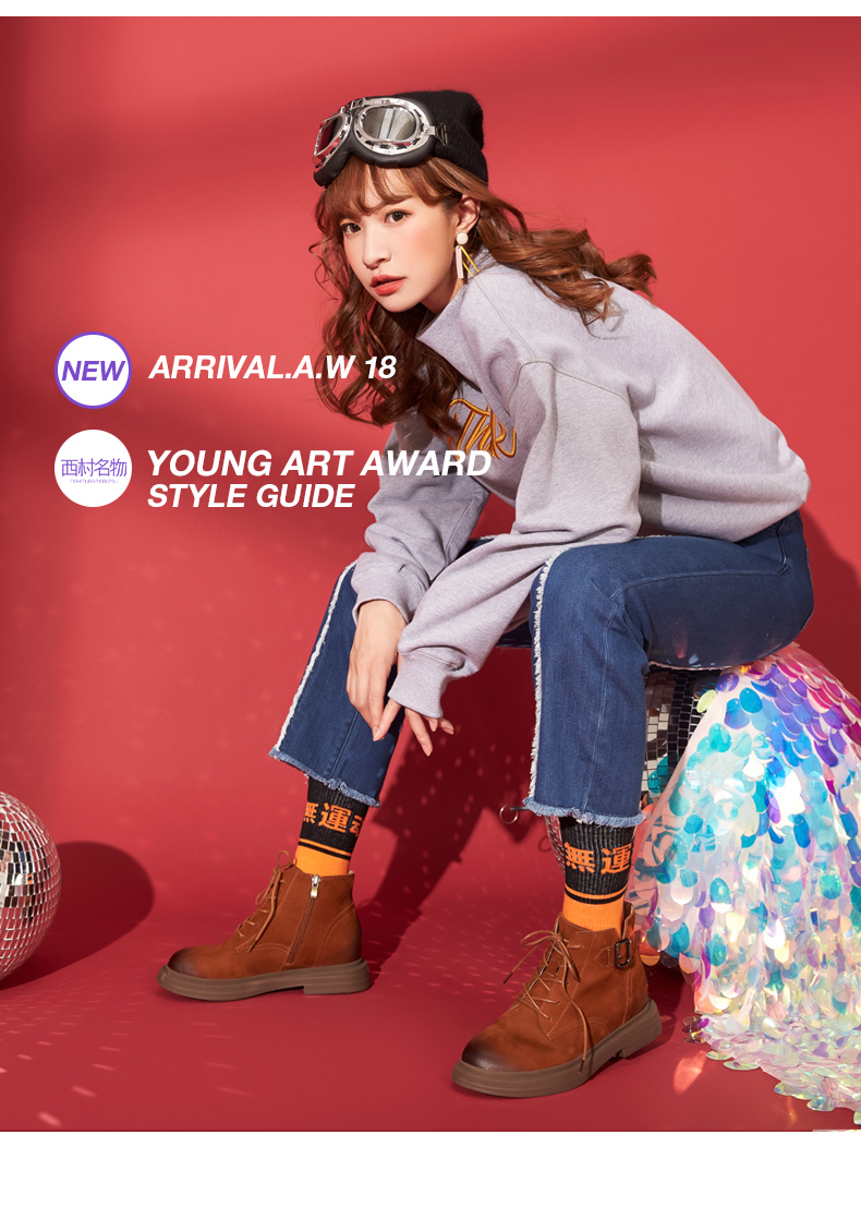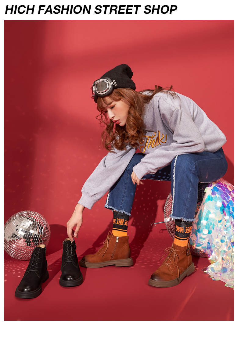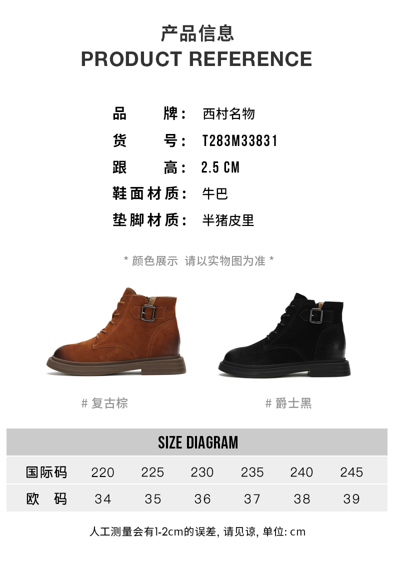 西村名物英伦复古马丁靴女秋季新款短靴女平底牛皮靴子T283M41701