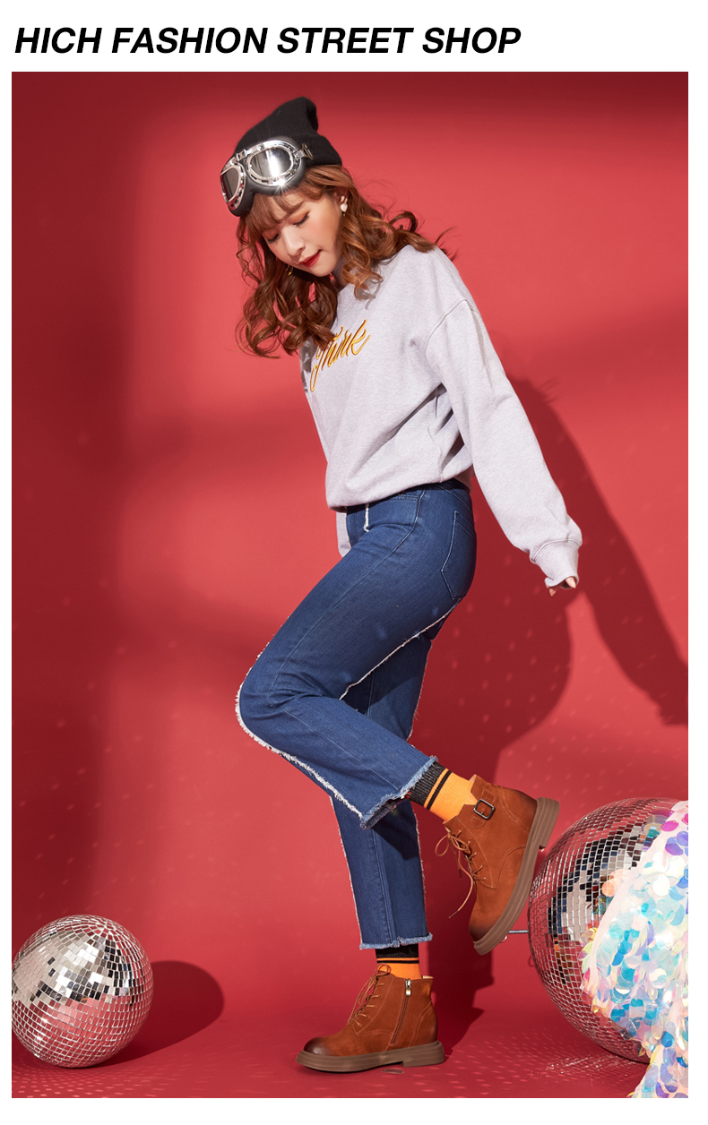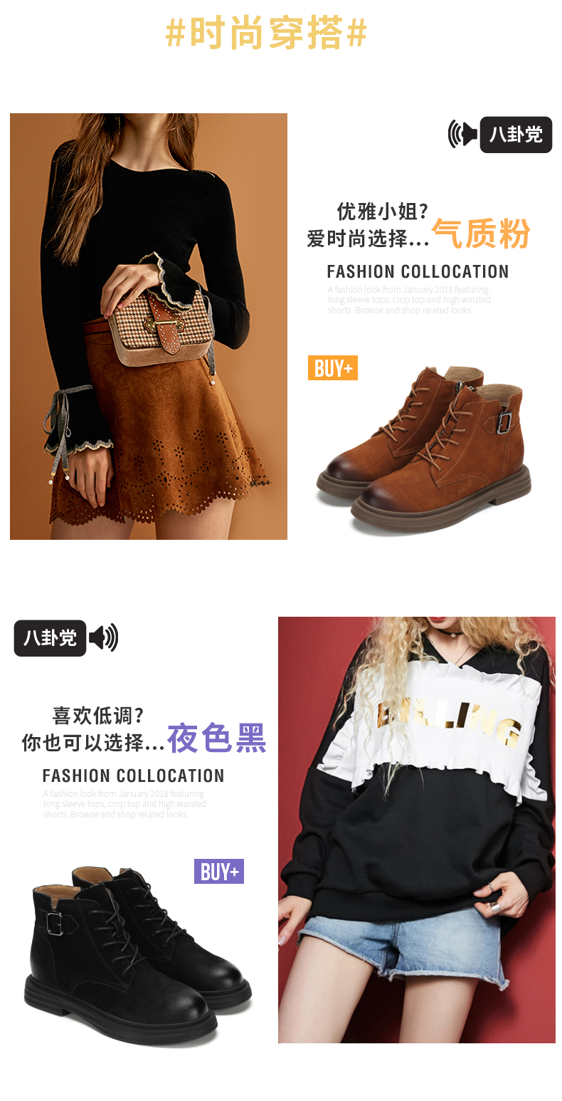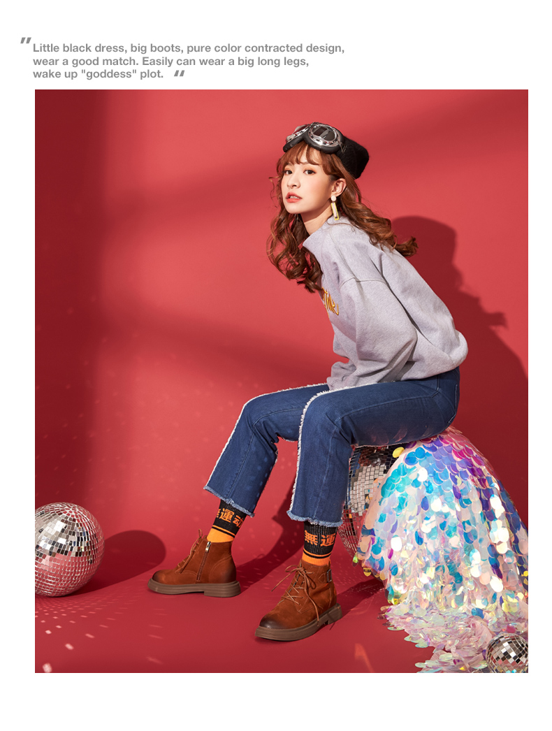 西村名物英伦复古马丁靴女秋季新款短靴女平底牛皮靴子T283M41701