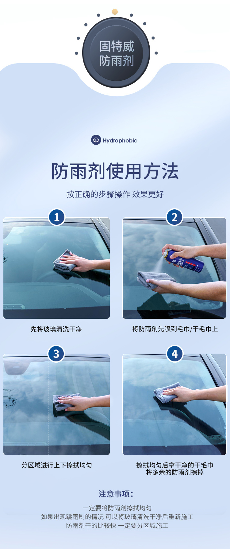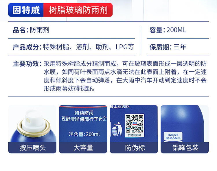 固特威防雨剂 汽车挡风玻璃后视镜通用 车用防雨 去除油膜