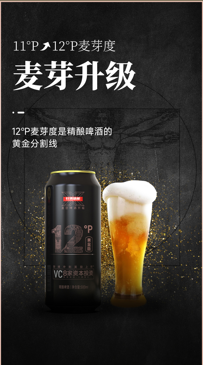 轩博黄金版 12度精酿啤酒 小麦白啤 500ml*12 聚会畅饮【臻选好酒】
