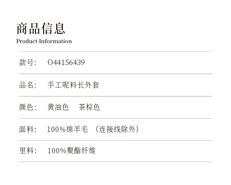 oldcolour冬季新款高级感气质显瘦长款纯羊毛毛呢外套女O44156439