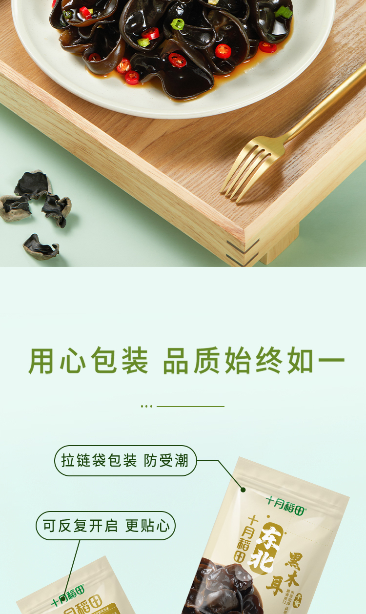 十月稻田 东北黑木耳 100g*2袋 脆滑爽口 72小时发货