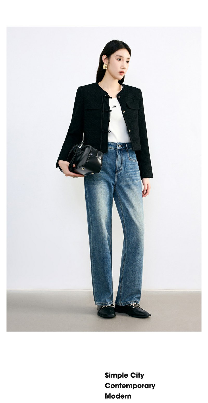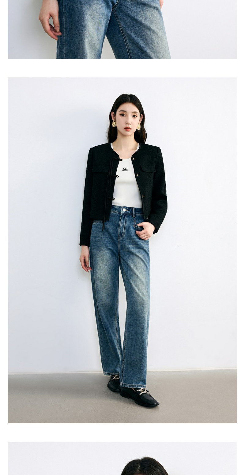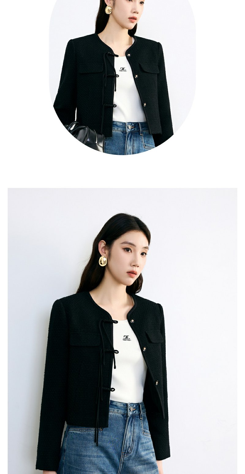 NEELLY纳俪2024秋商场同款新中式盘扣黑色短外套羊毛混纺女新款N24084C04593