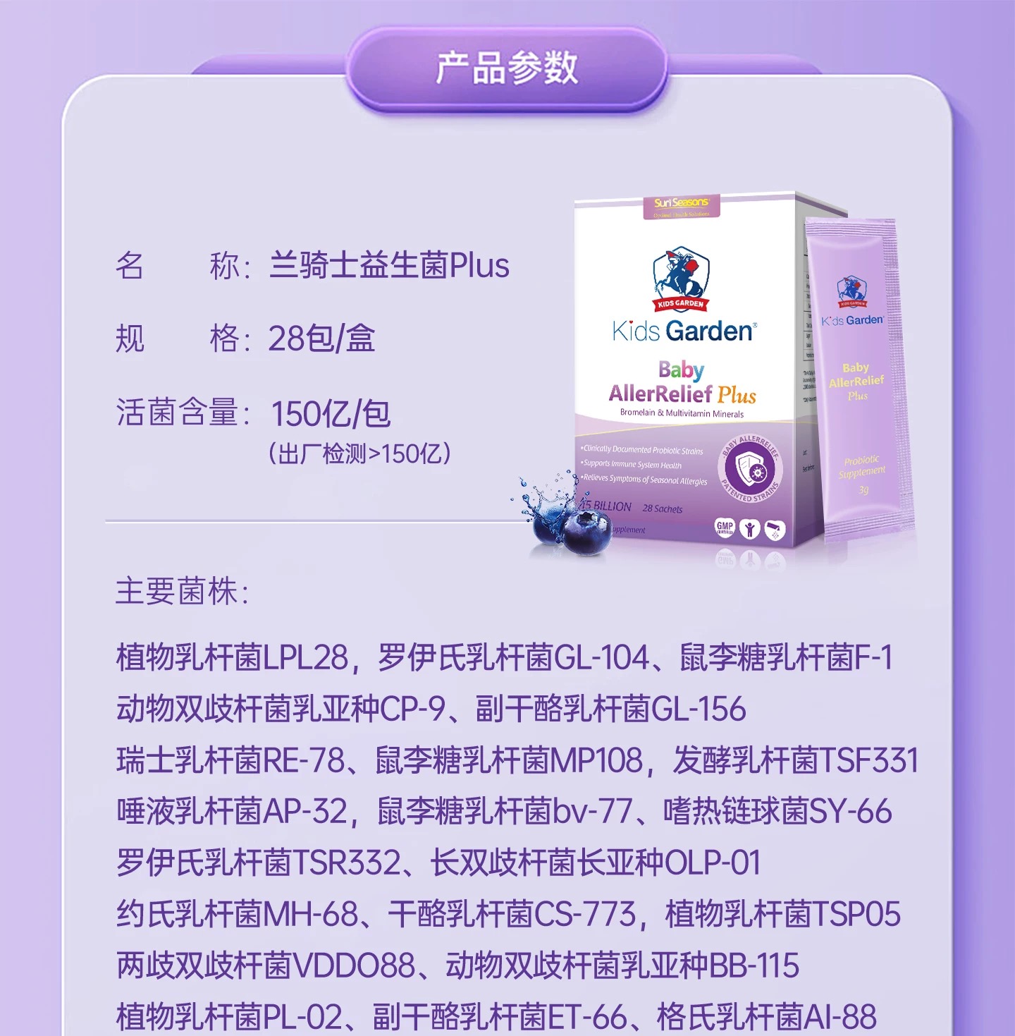 225【买三赠一】(临期8月21到期)兰骑士益生菌Plus婴幼儿童宝宝反复过敏肠胃舒鼻 28袋/盒