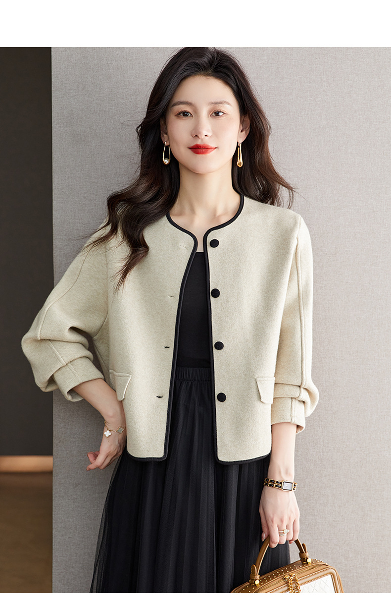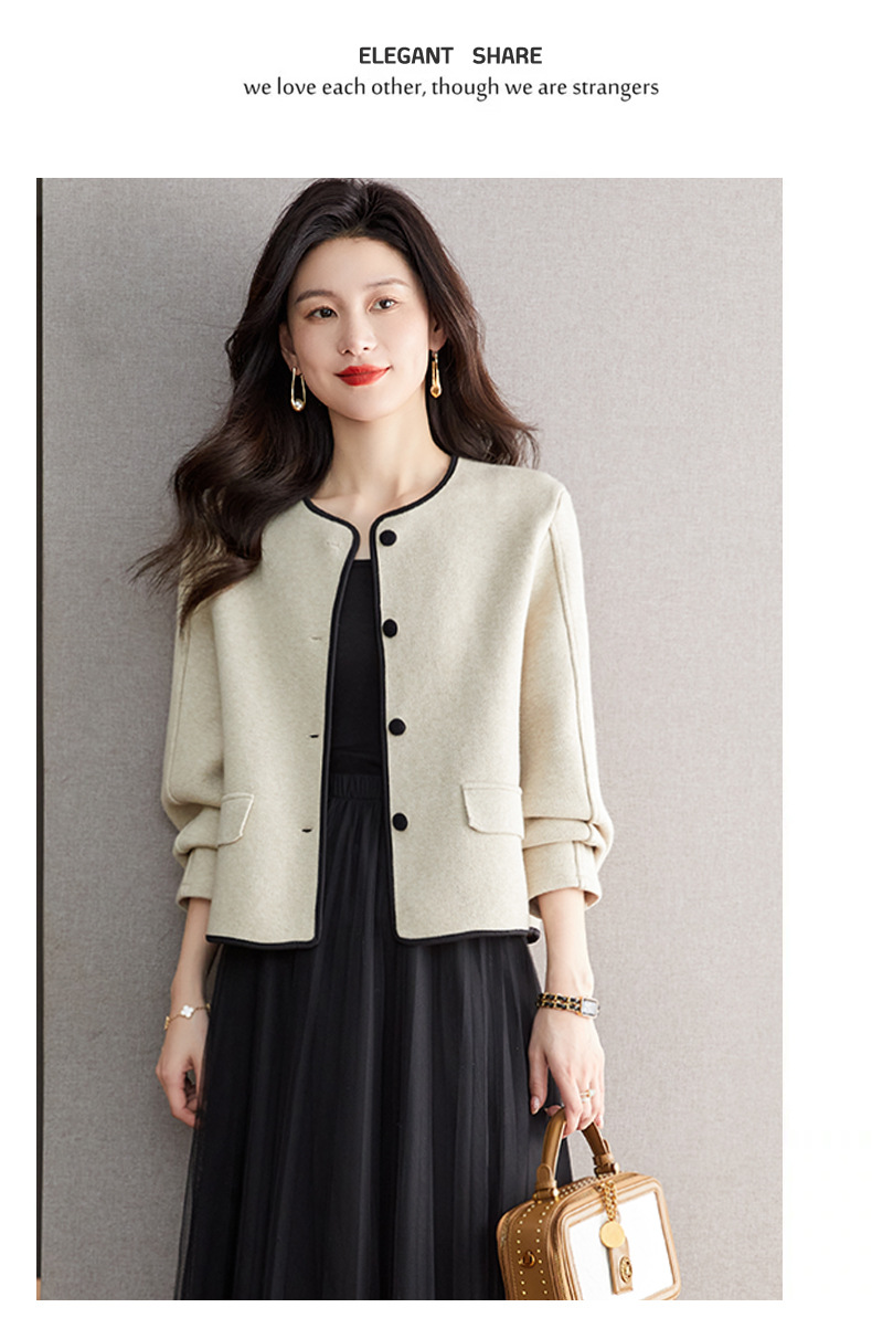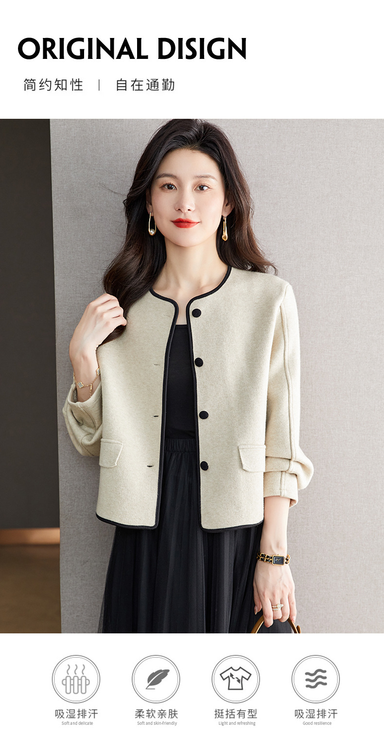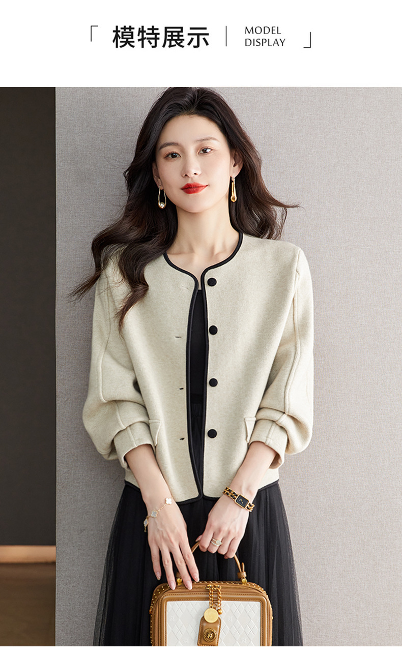 小香风毛呢外套,早春秋冬季女装圆领西装短款针织开衫女士上衣CC-ML-0616