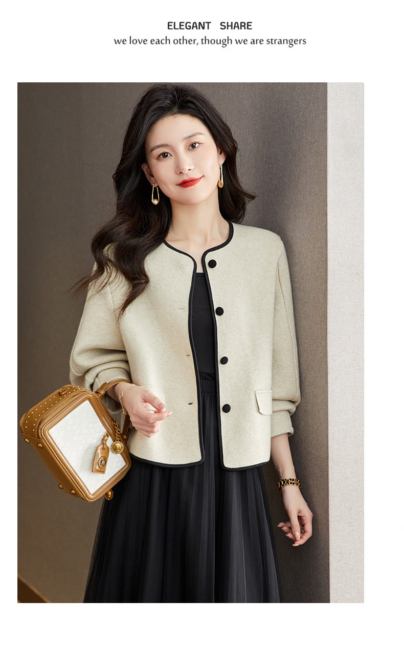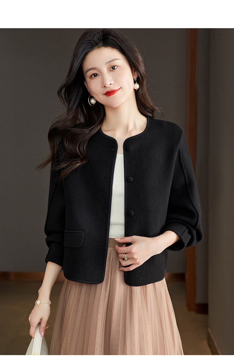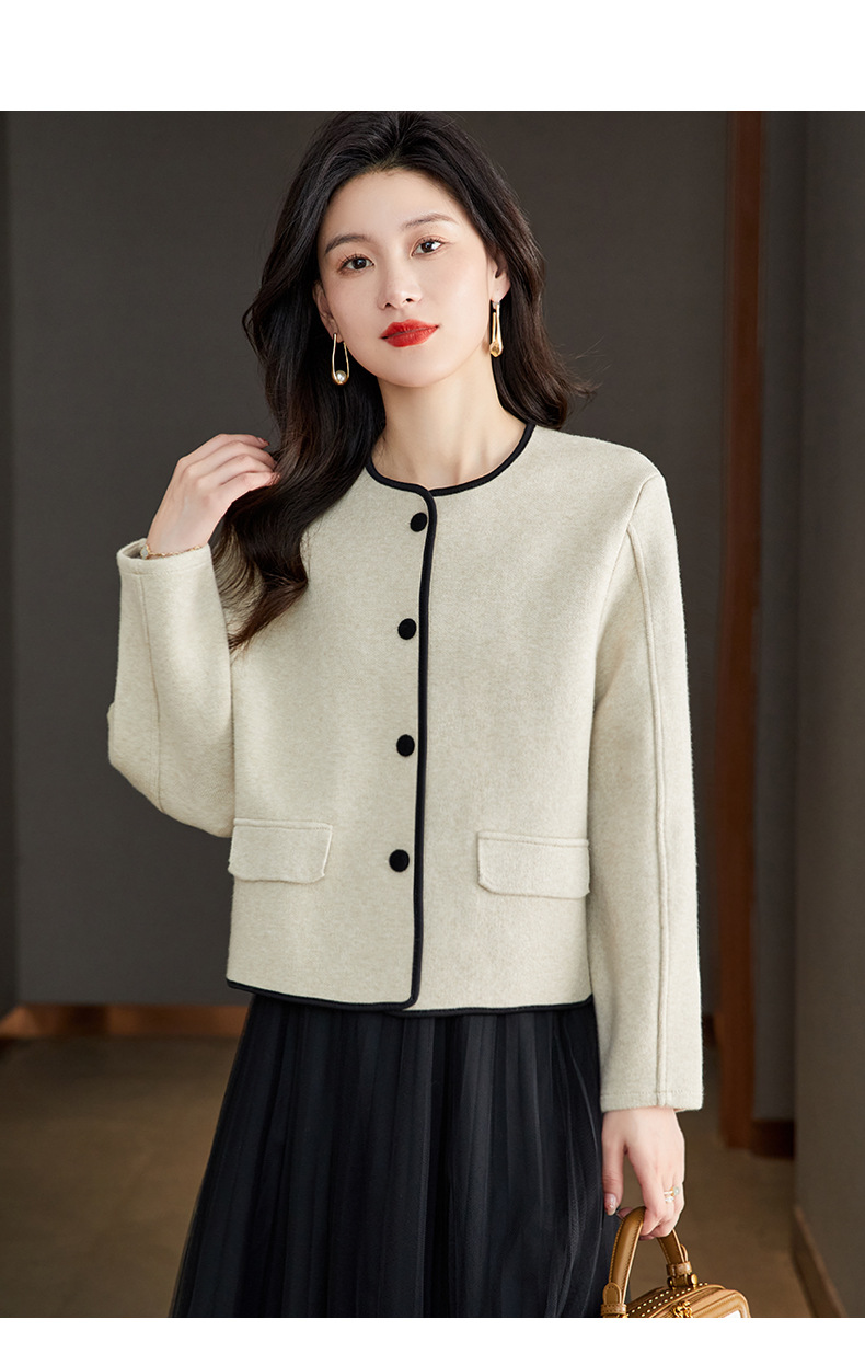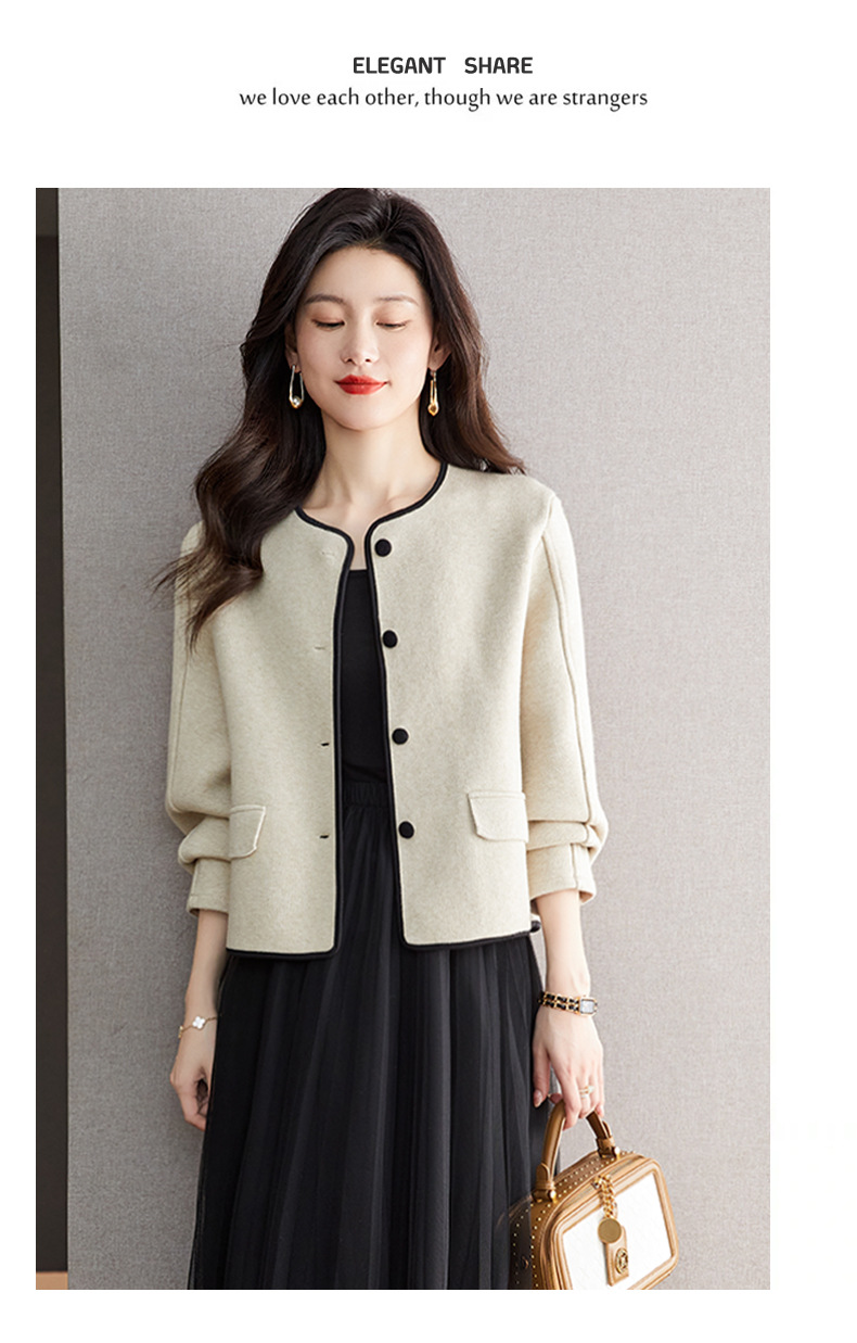 小香风毛呢外套,早春秋冬季女装圆领西装短款针织开衫女士上衣CC-ML-0616