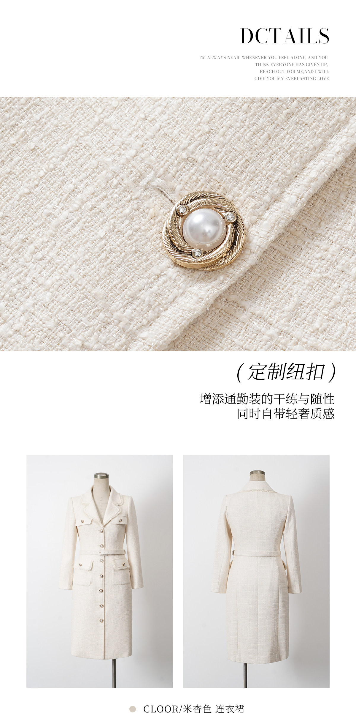 IWY/小香风粗花呢连衣裙女高级感西装裙显瘦通勤职业装工装裙WQ001-M