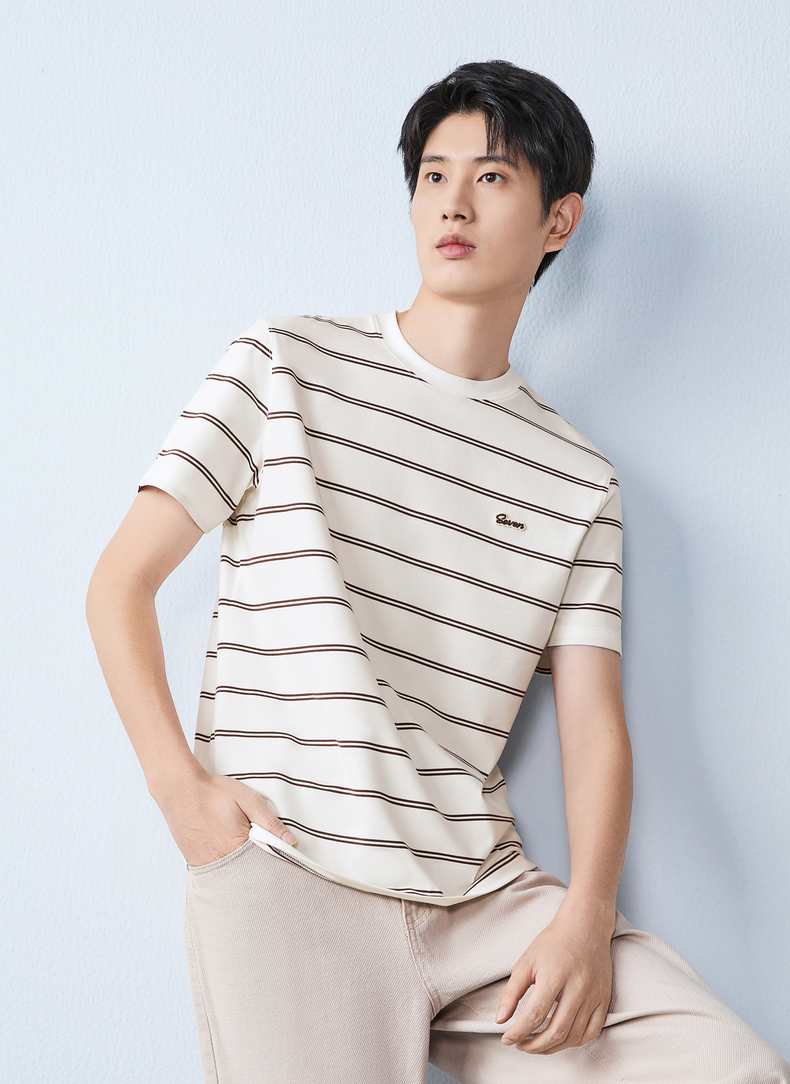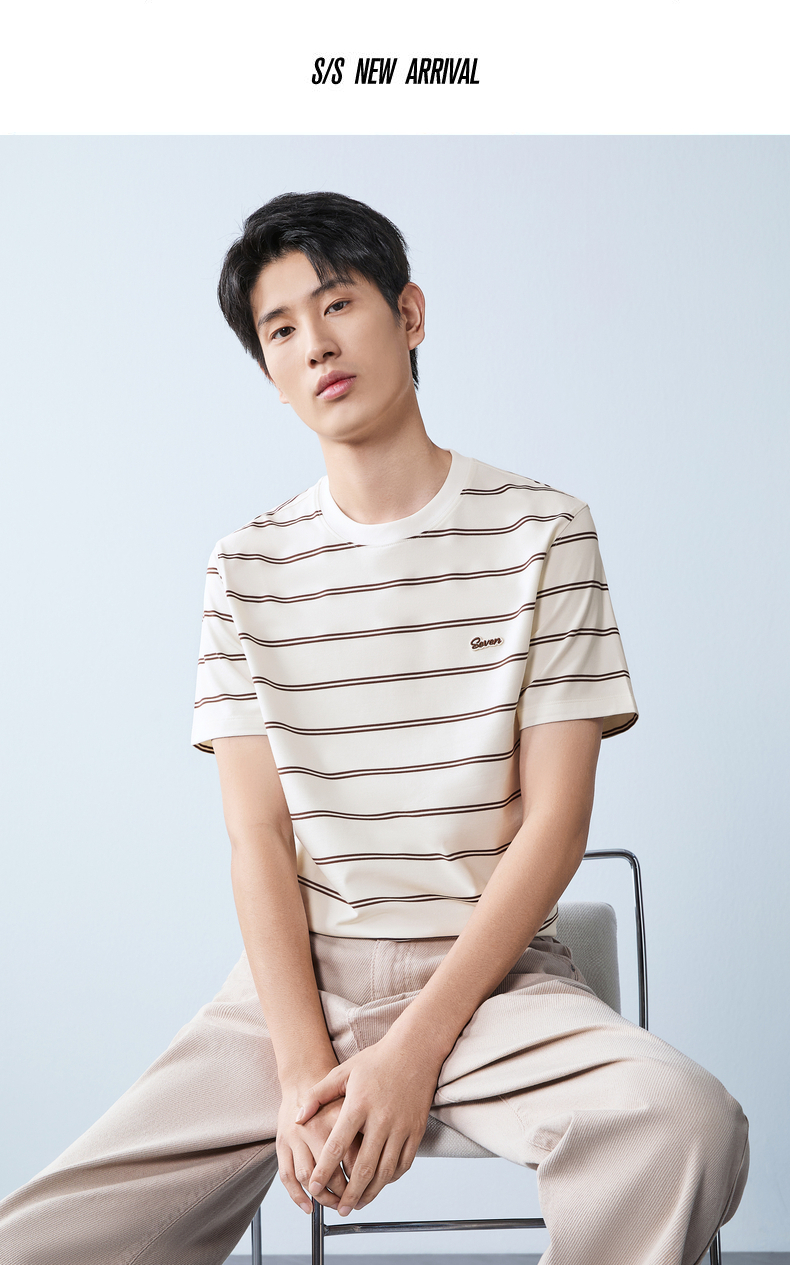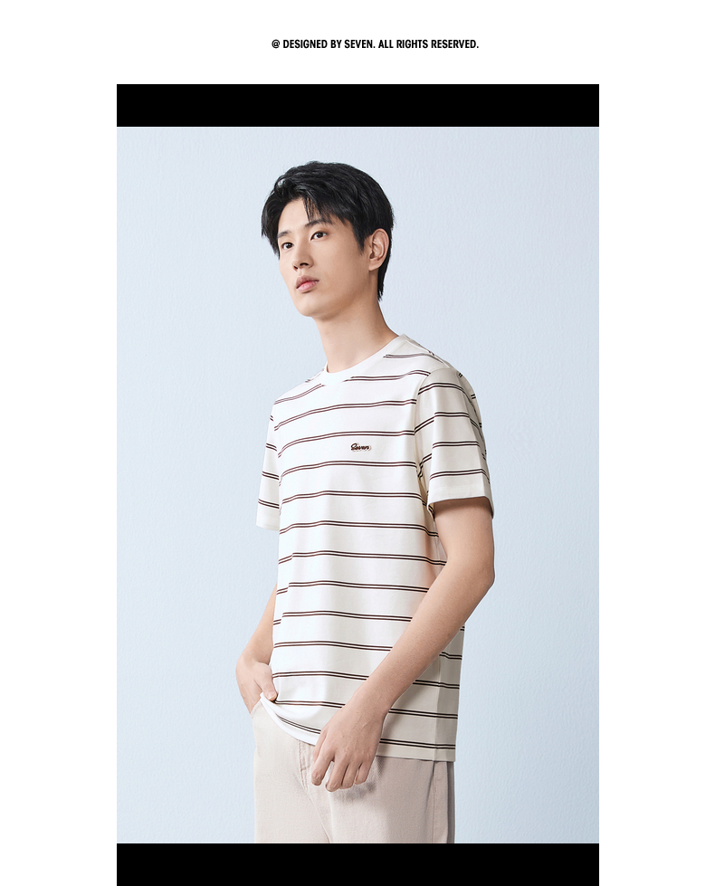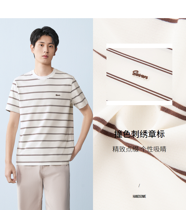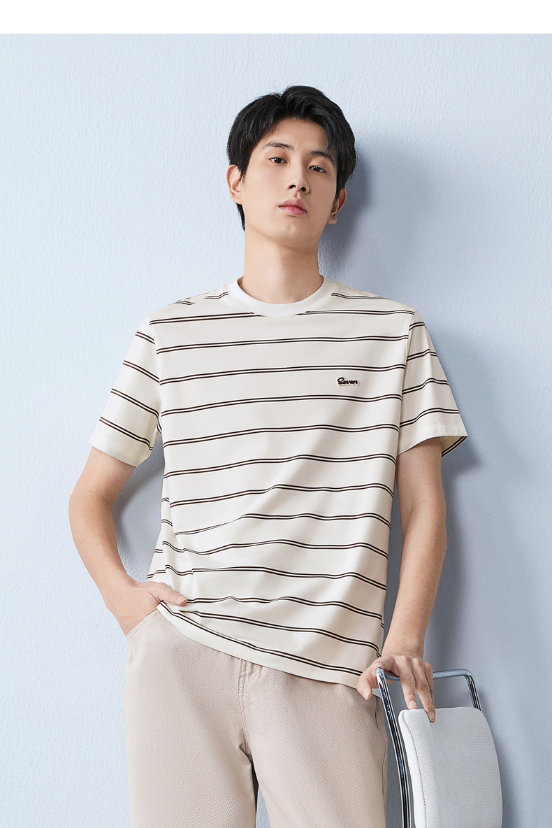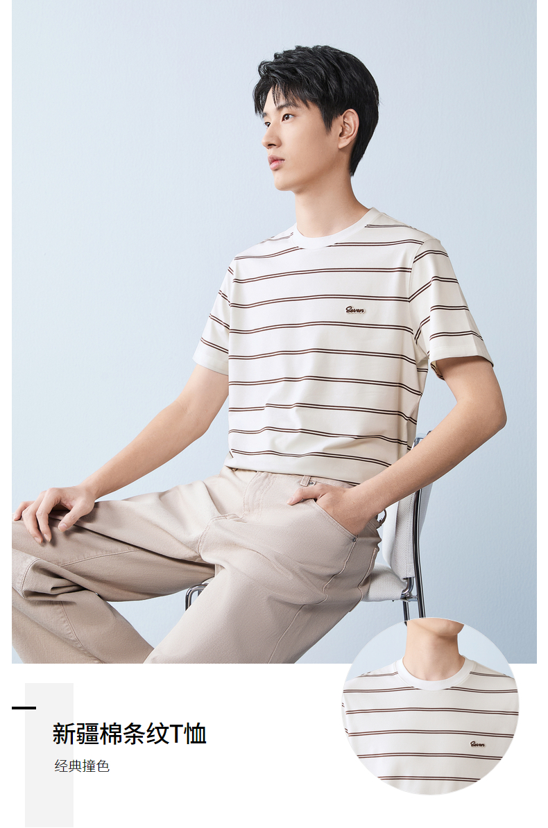【经典条纹撞色】柒牌男式短袖T恤26春夏新品圆领套头休闲上衣 130T72260