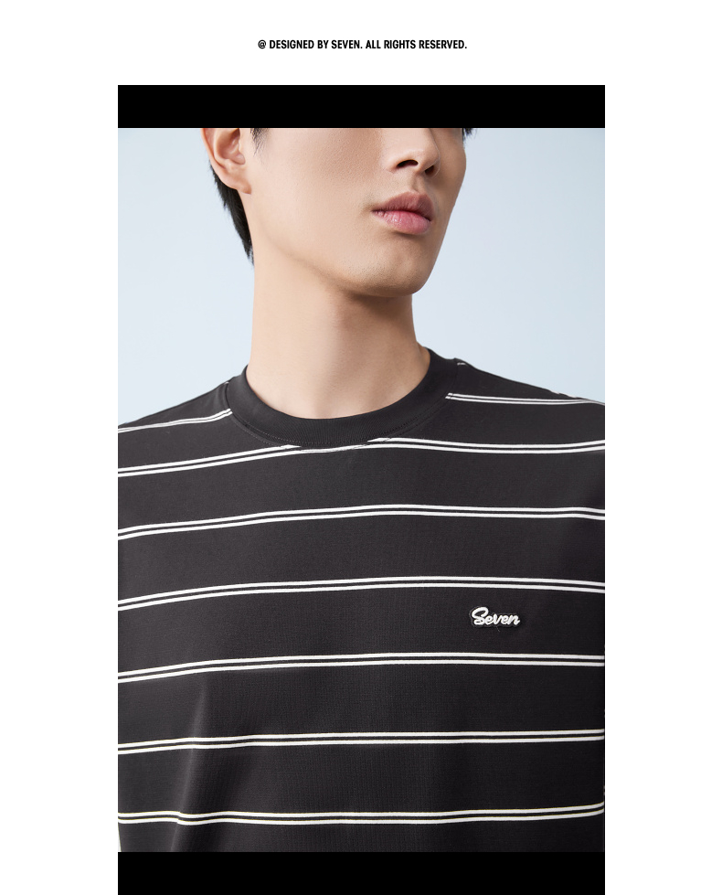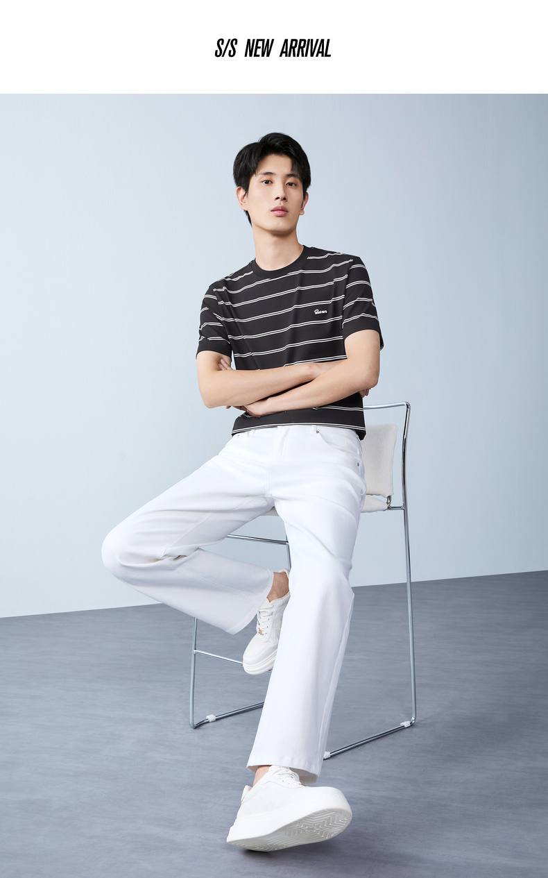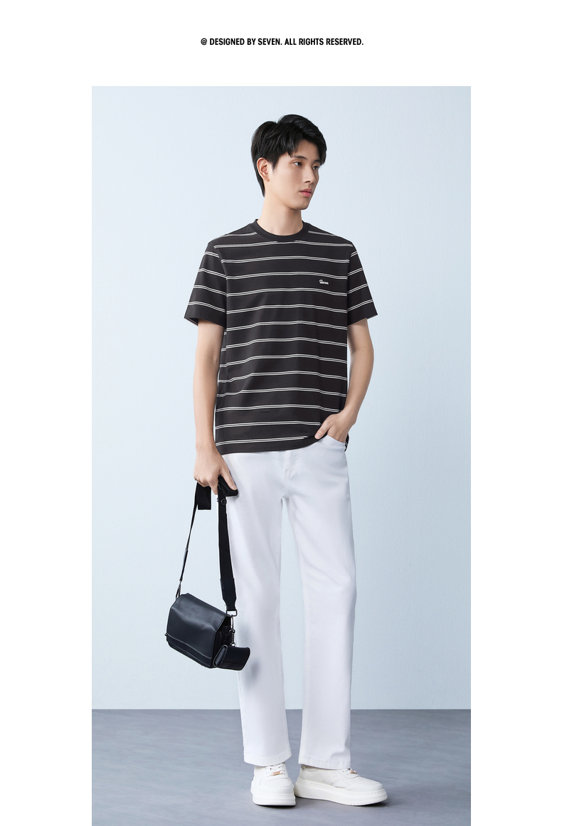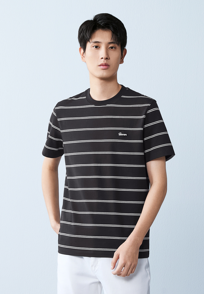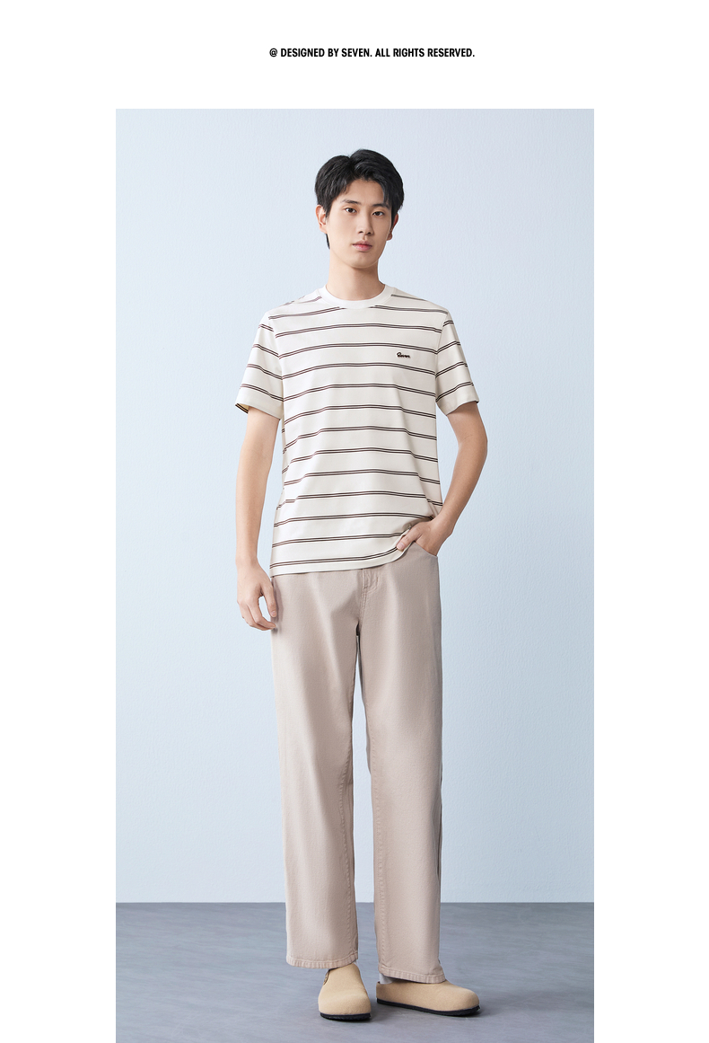 【经典条纹撞色】柒牌男式短袖T恤26春夏新品圆领套头休闲上衣 130T72260