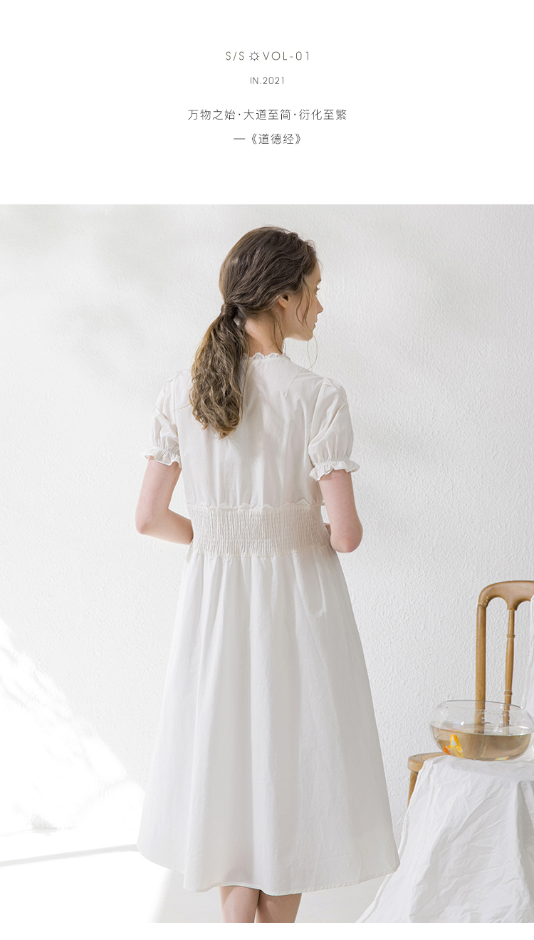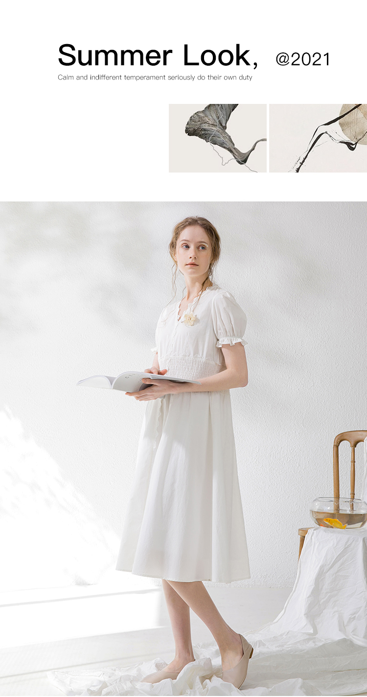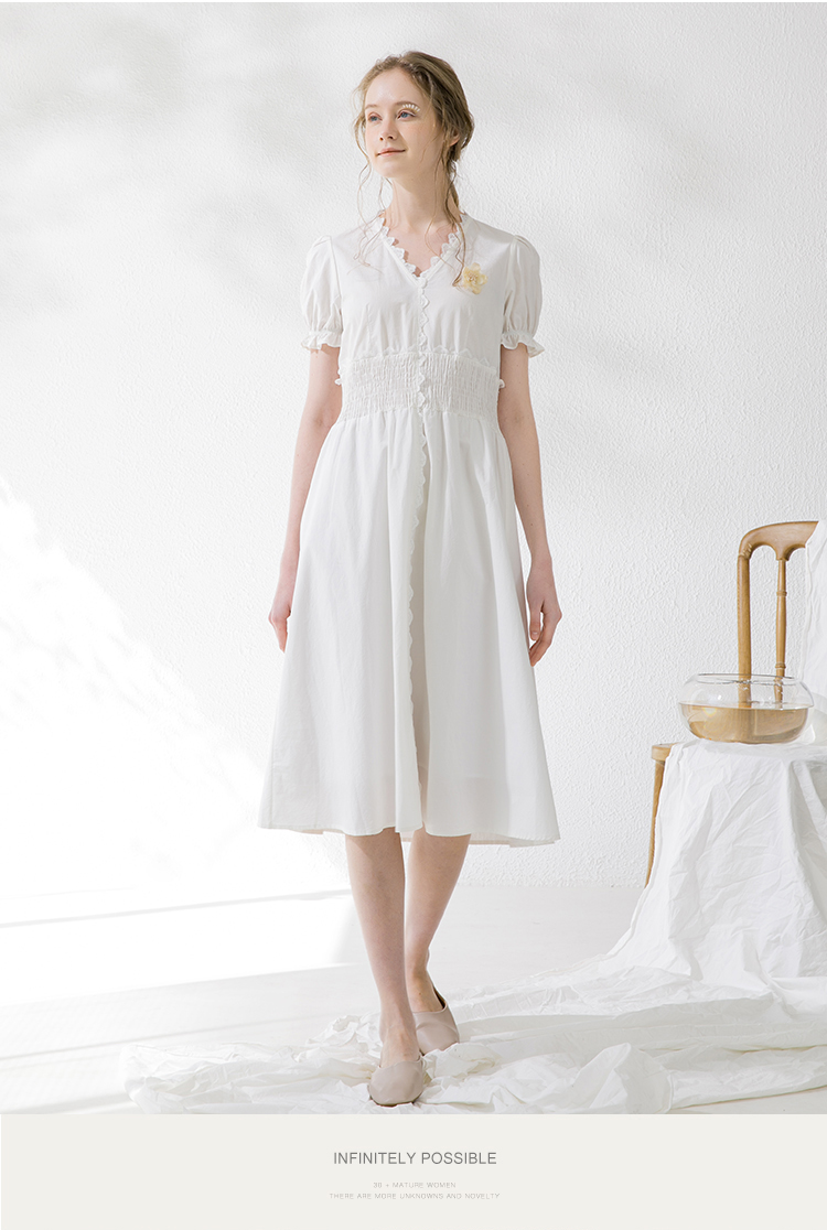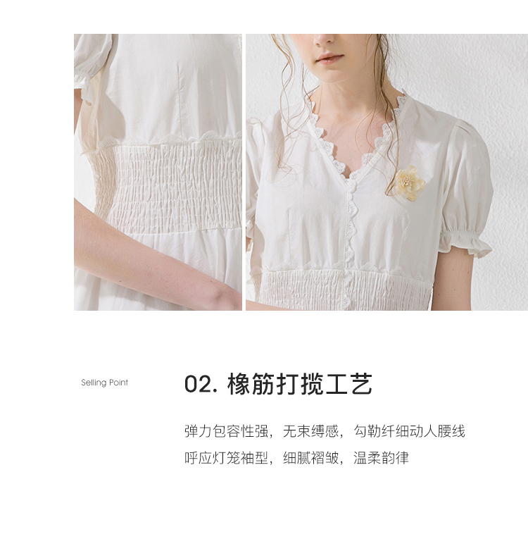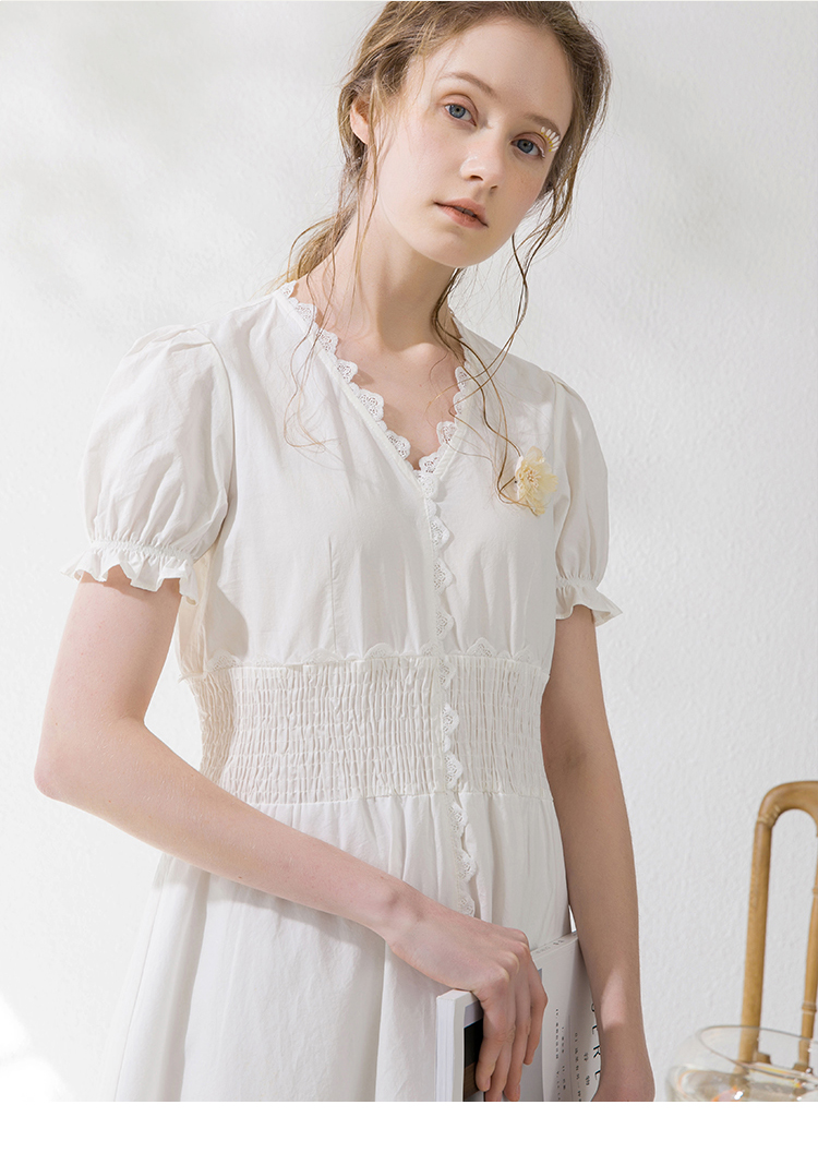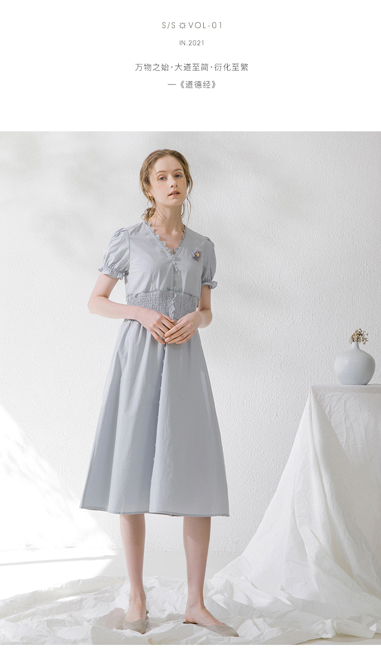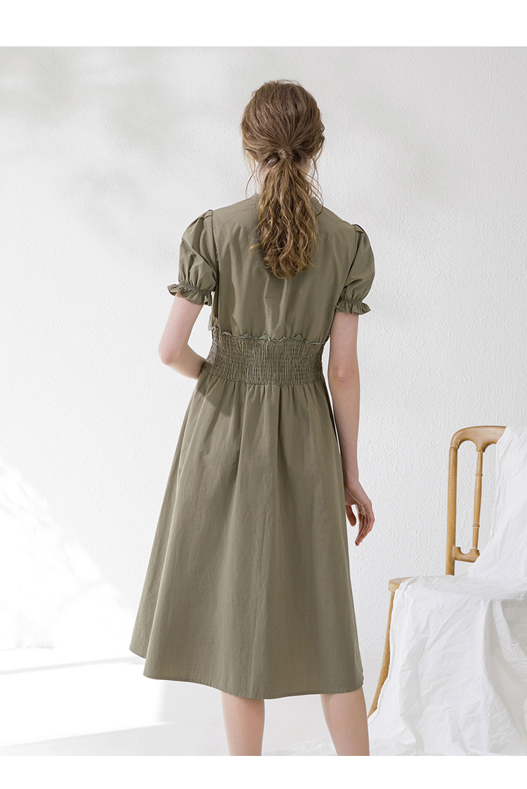 famecoco范可儿法式连衣裙女夏季v领泡泡袖长裙F213FA037