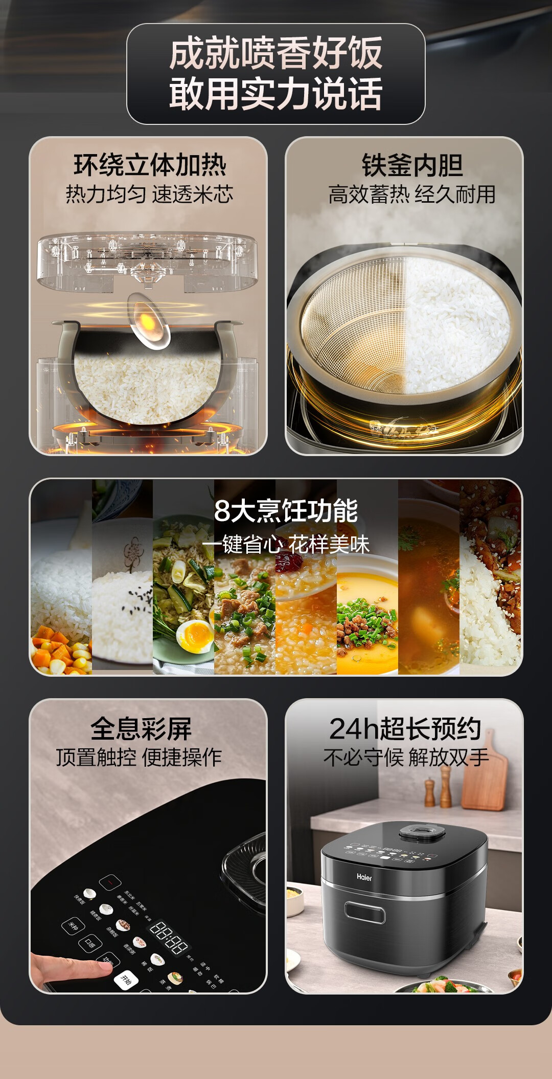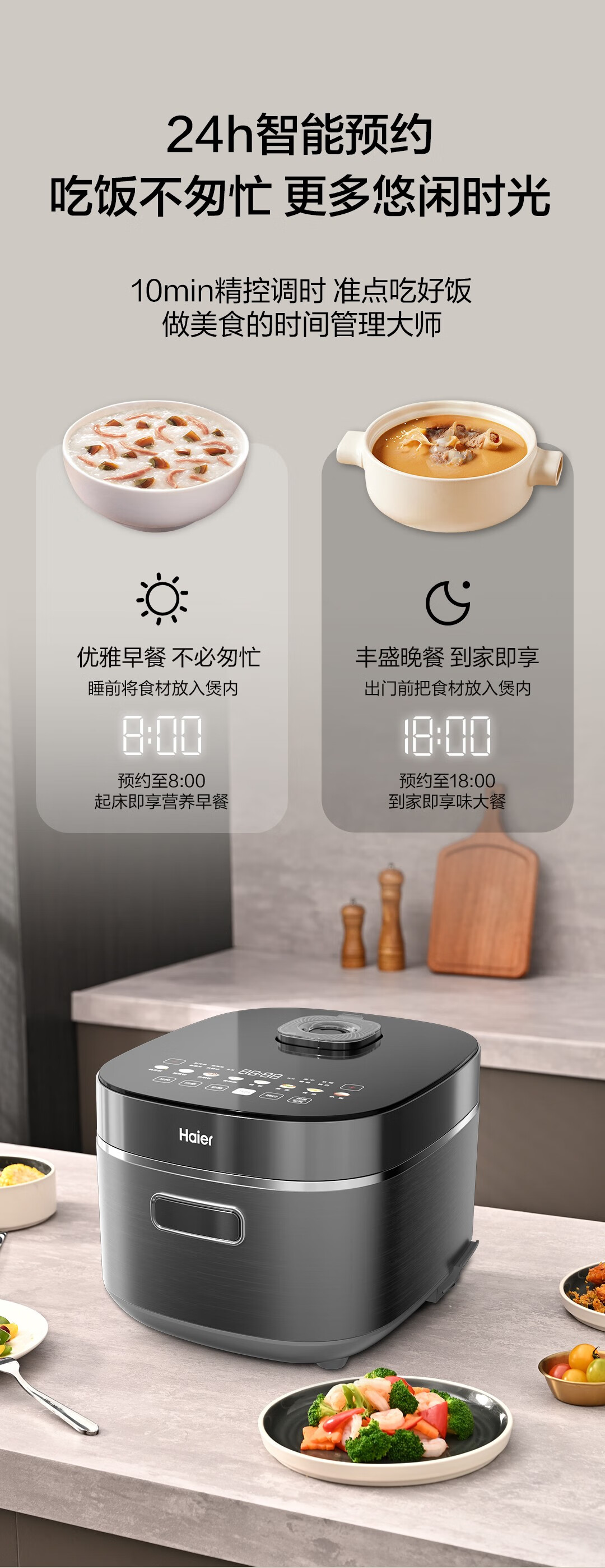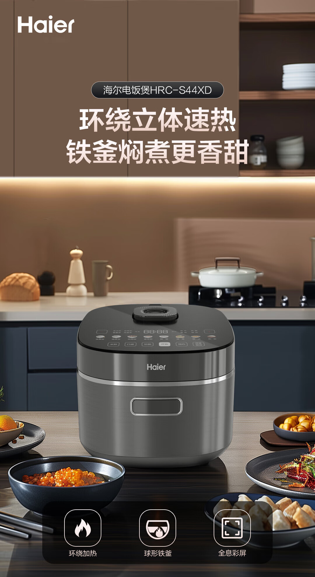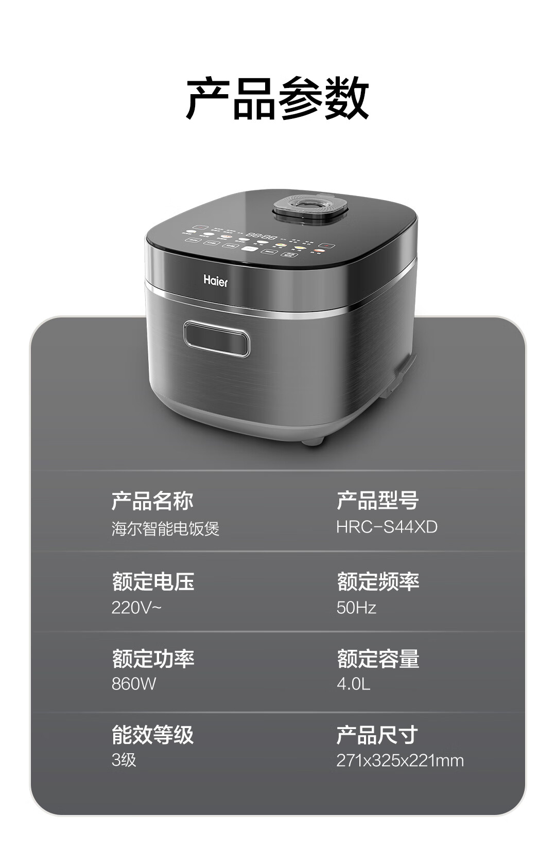 海尔(Haier)家用电饭煲电饭锅 多功能智能预约定时快速煮杂粮饭粥大功率4L大容量HRC-S44XD