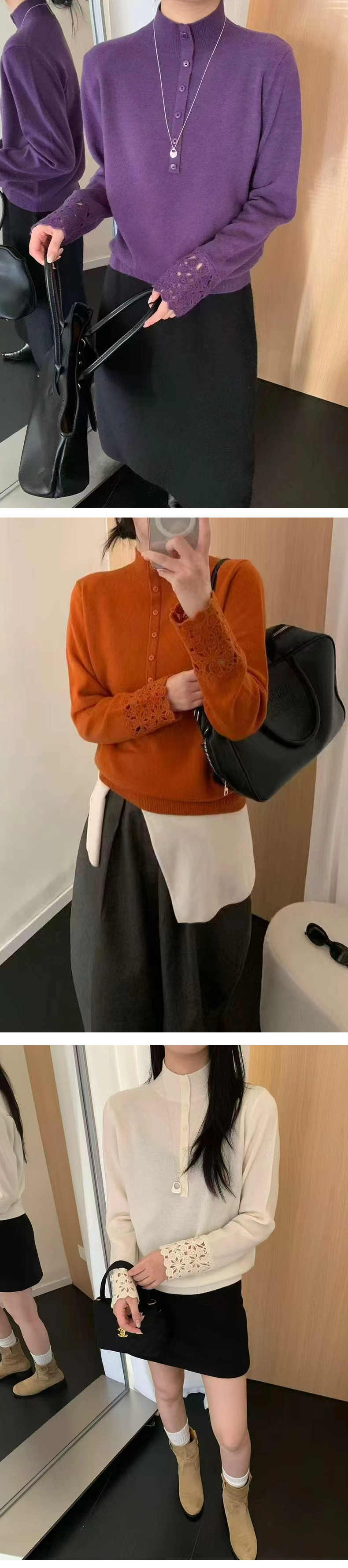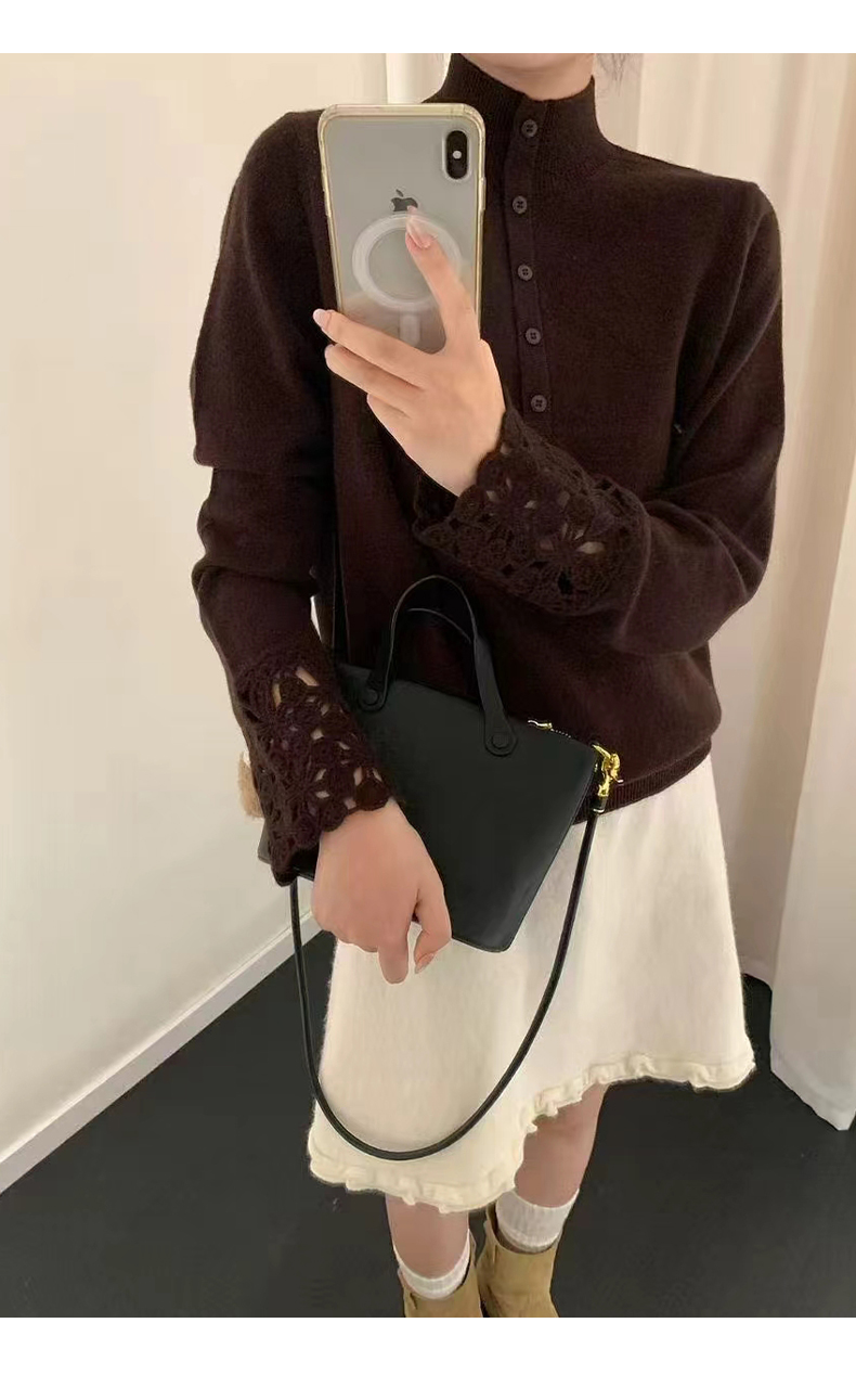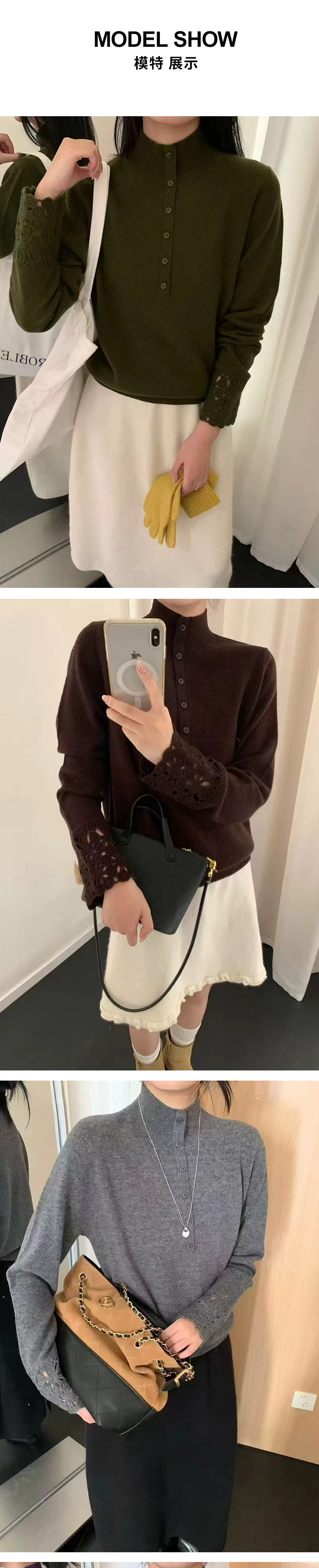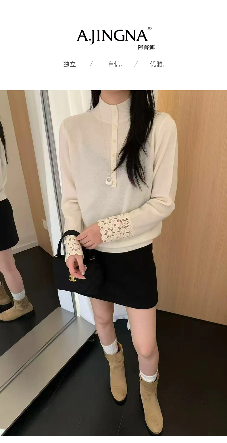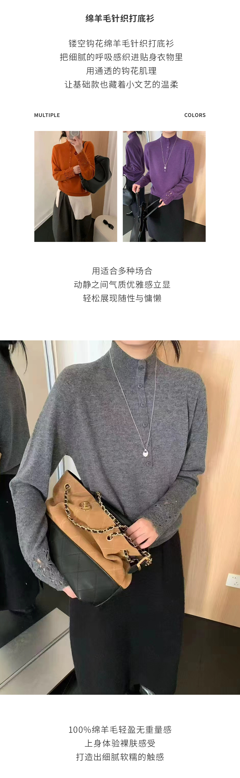 【空气肌理】阿菁娜冬季新款镂空钩花羊毛衫100%绵羊毛裸肤感空气肌理文艺内搭慵懒F30D302010