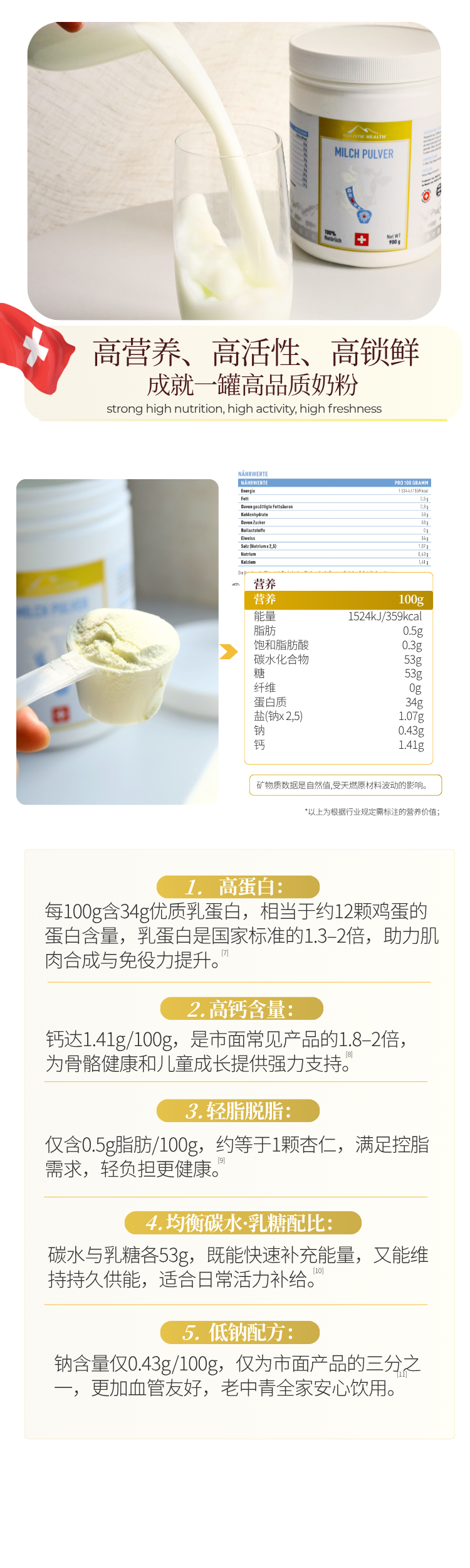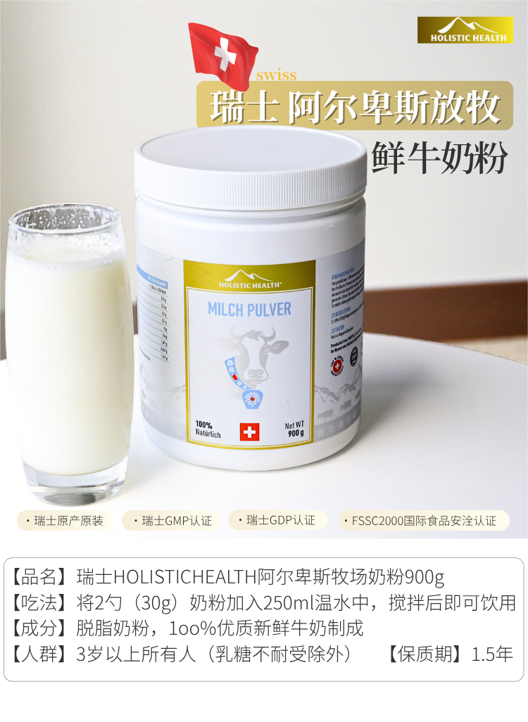 瑞士原装进口!全脱脂奶粉900g 全家老少/ 孕哺期都能喝🥛阿尔卑斯山牧场奶源 高钙高蛋白!不易上火好消化,肠胃脆弱也能放心喝~日期26年8月