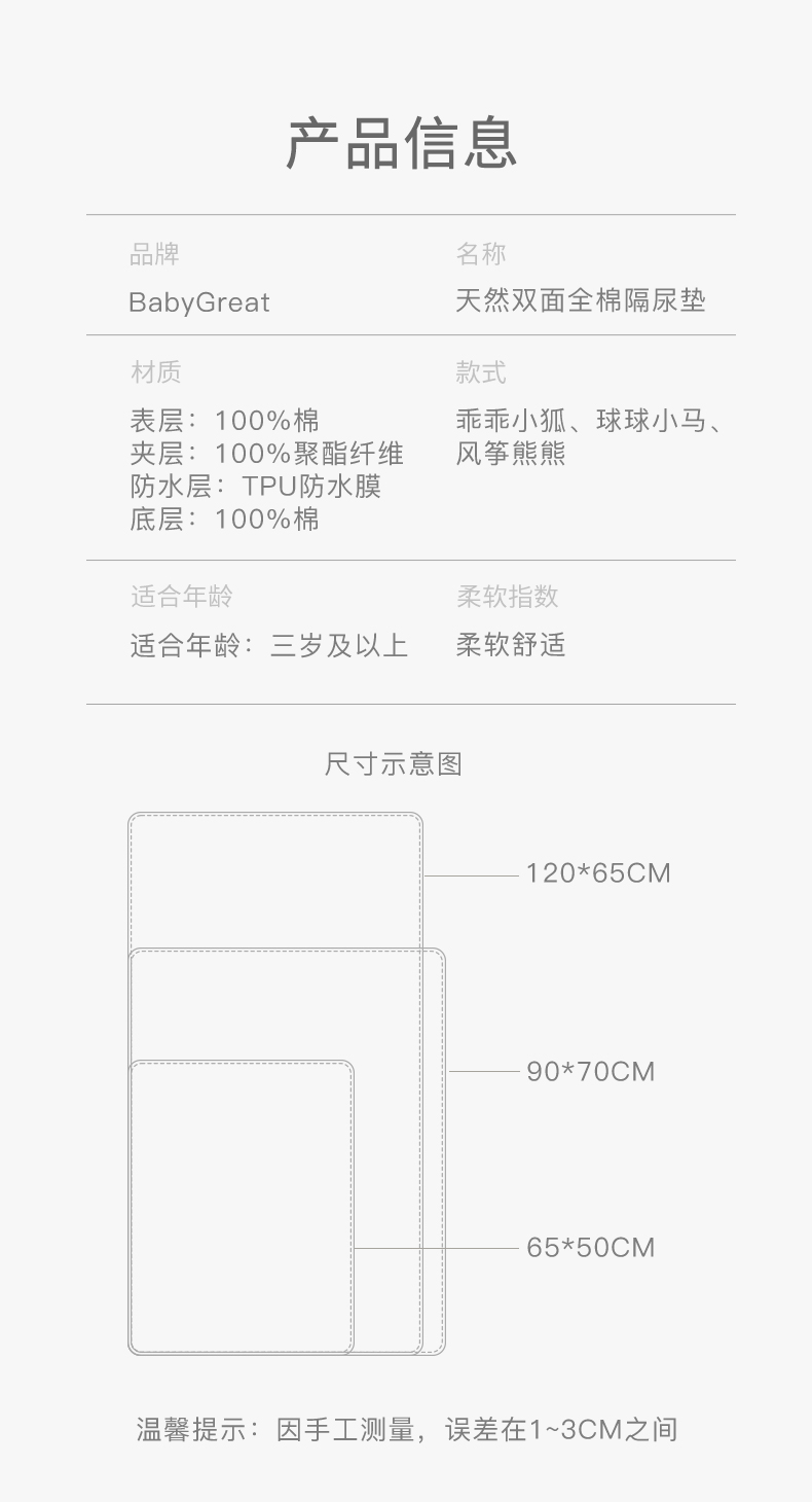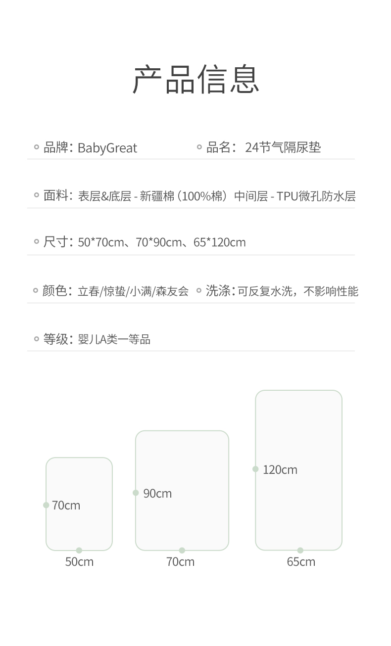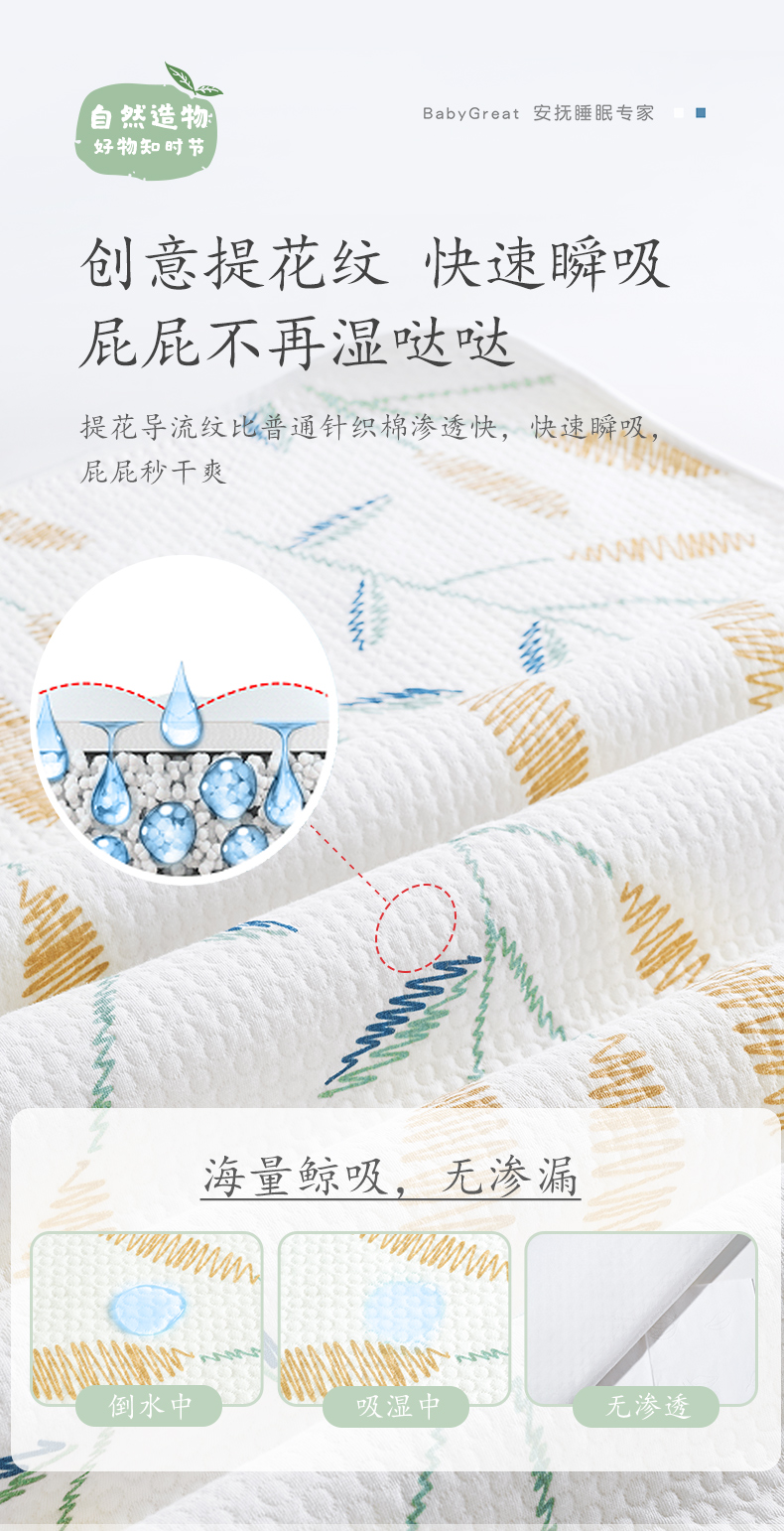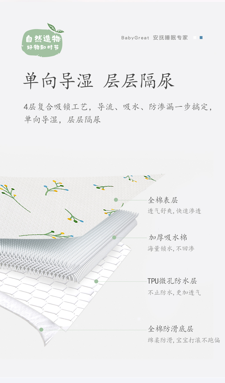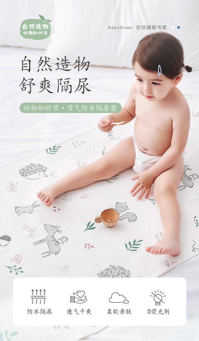 【BG】babygreat婴儿防水可洗全棉透气隔尿垫