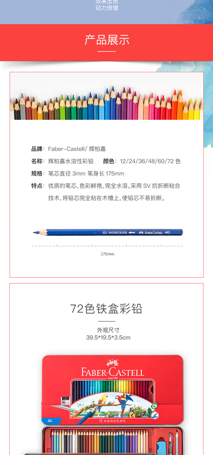 德国辉柏嘉 红系列 鹦鹉铁盒水溶性彩色铅笔 24/36/48/60/72色