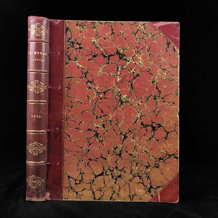 39*12.5cm!1899年 法国画报《世界画报》 数百幅版画插图 真皮精装8开