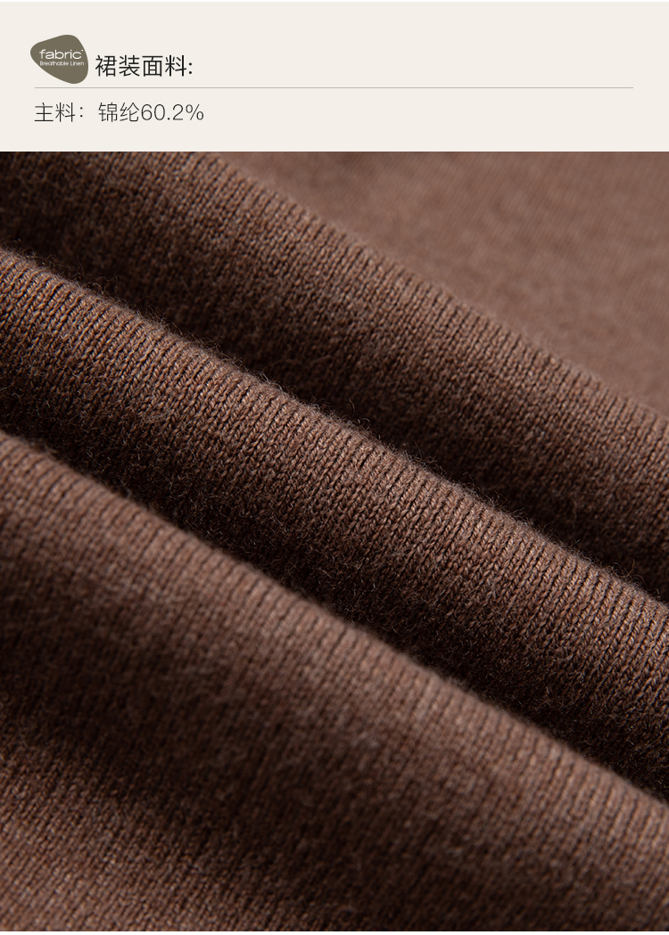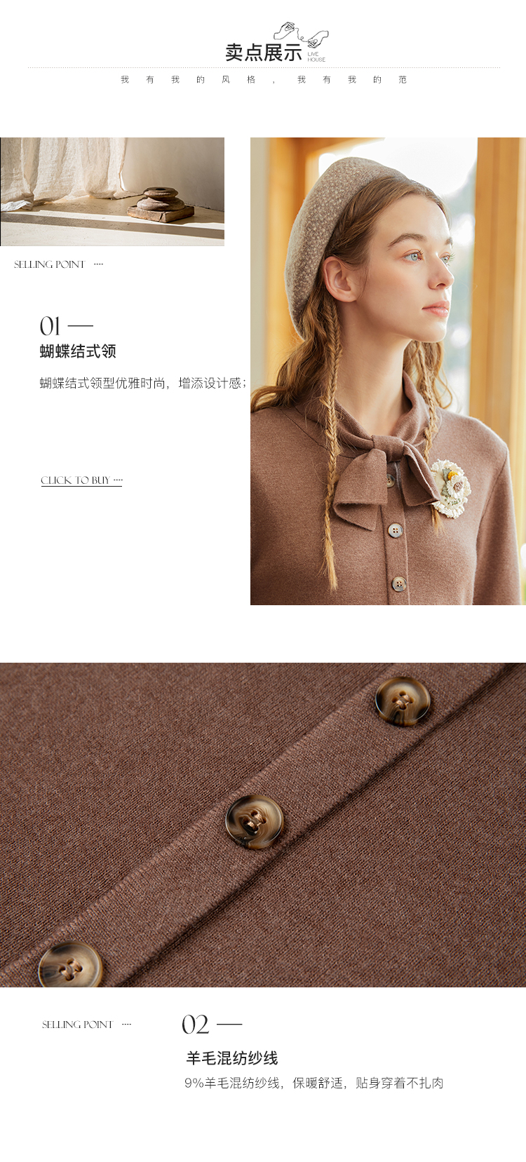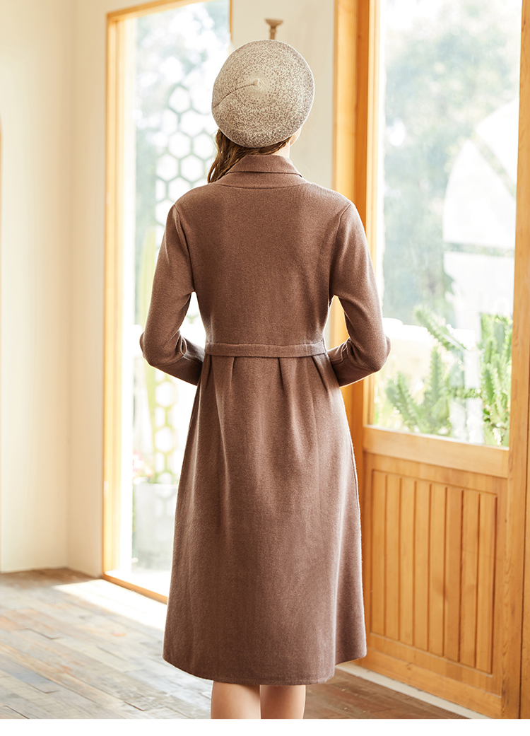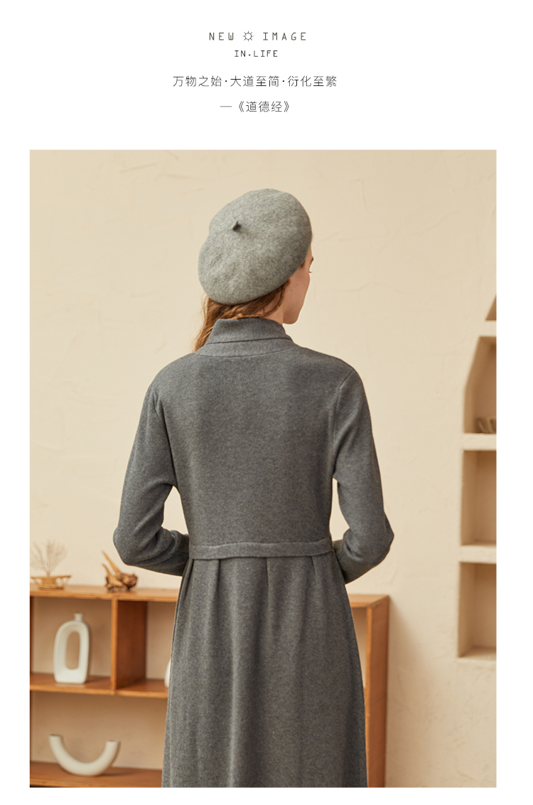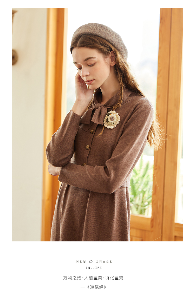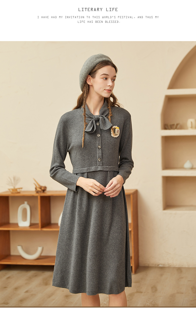 Famecoco范可儿蝴蝶结系带连衣裙秋冬款过膝长款高腰毛衣裙F228FA003