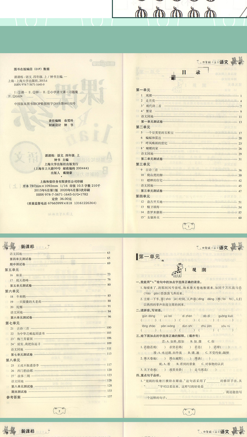 钟书金牌 课课练 部编版 语文 4年级上/四年级第一学期 语文 4语上 统编版上海小学教辅课后配套练习上海大学出版社