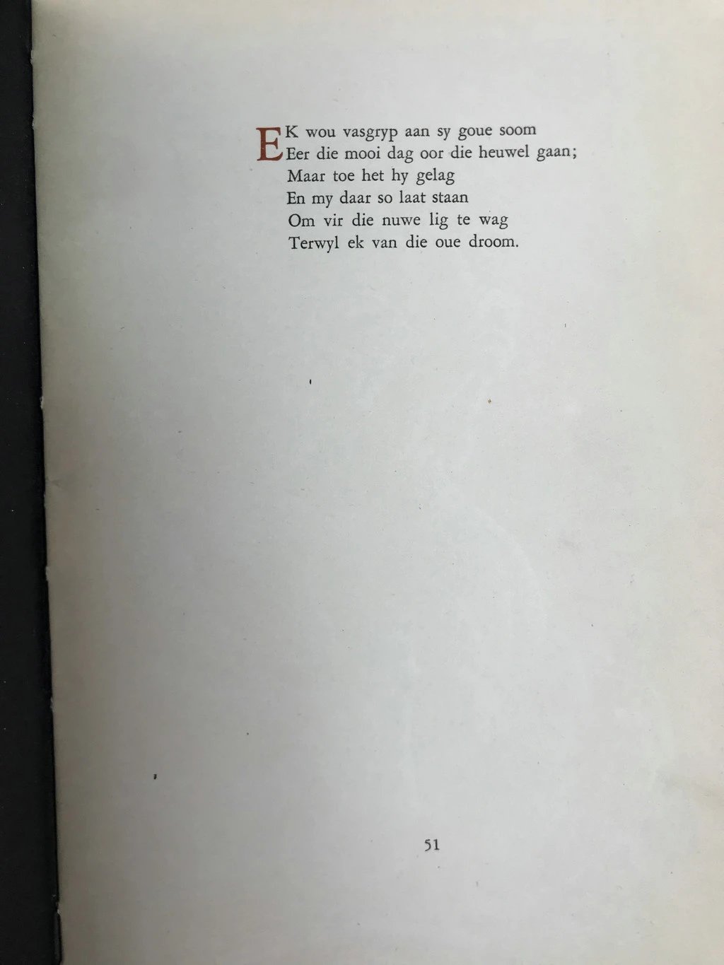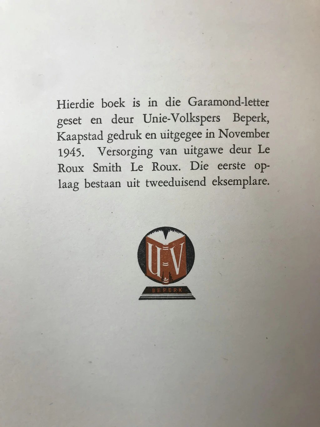 I. D. 杜・普莱西斯是阿非利卡语文学的先驱之一,本书中的诗歌以 “土地与传承” 为核心,表达了对南非本土文化与自然的认同,是阿非利卡民族主义文学的早期作品。